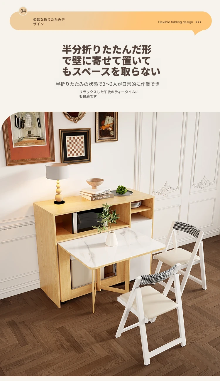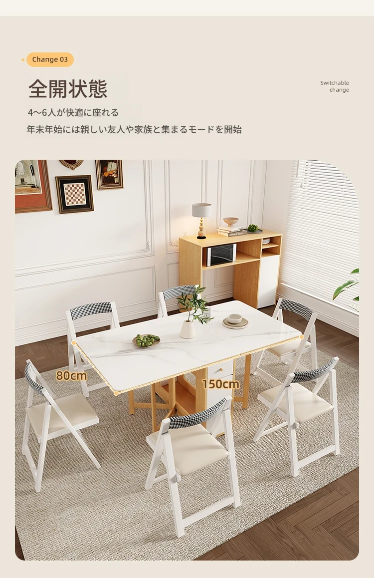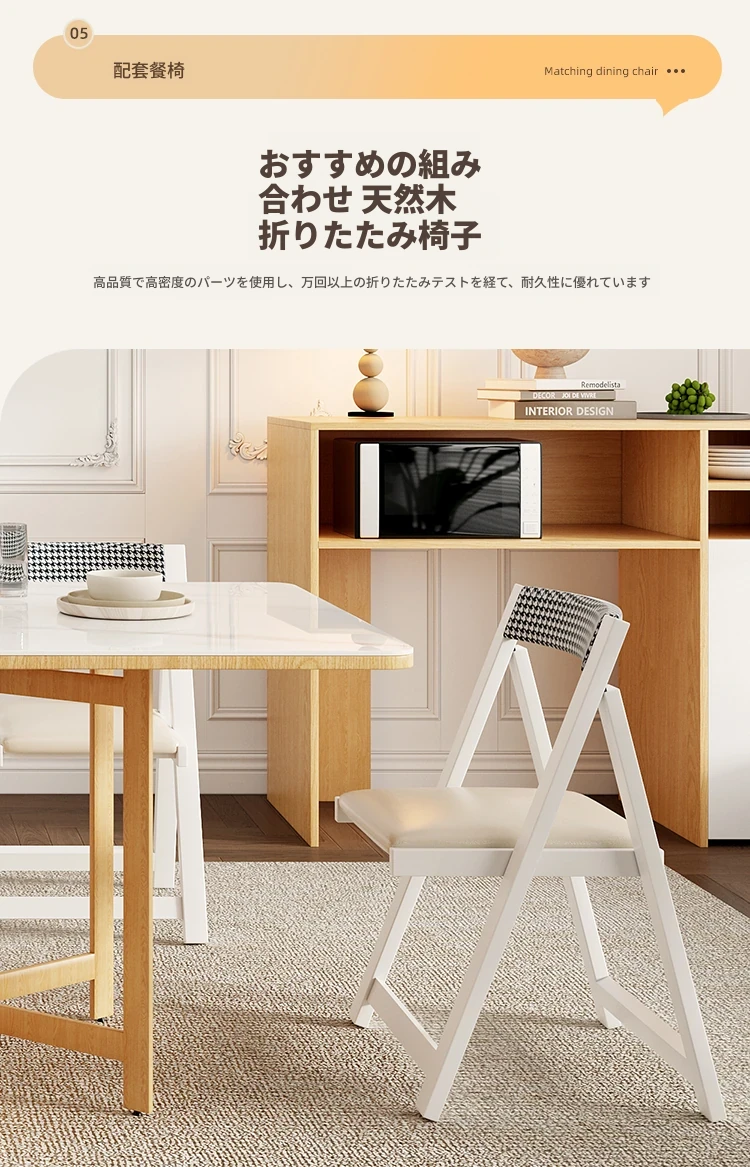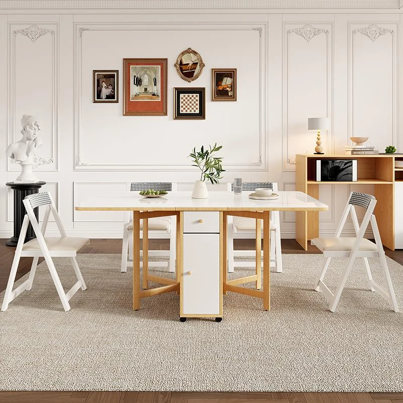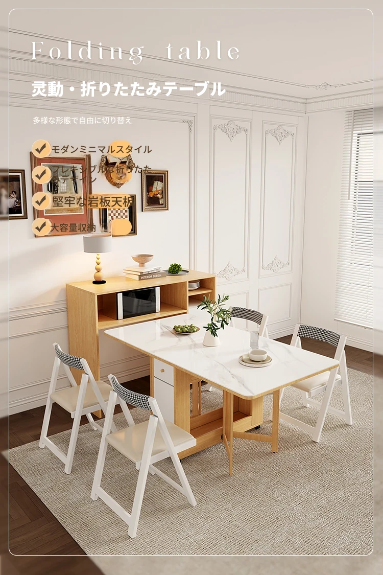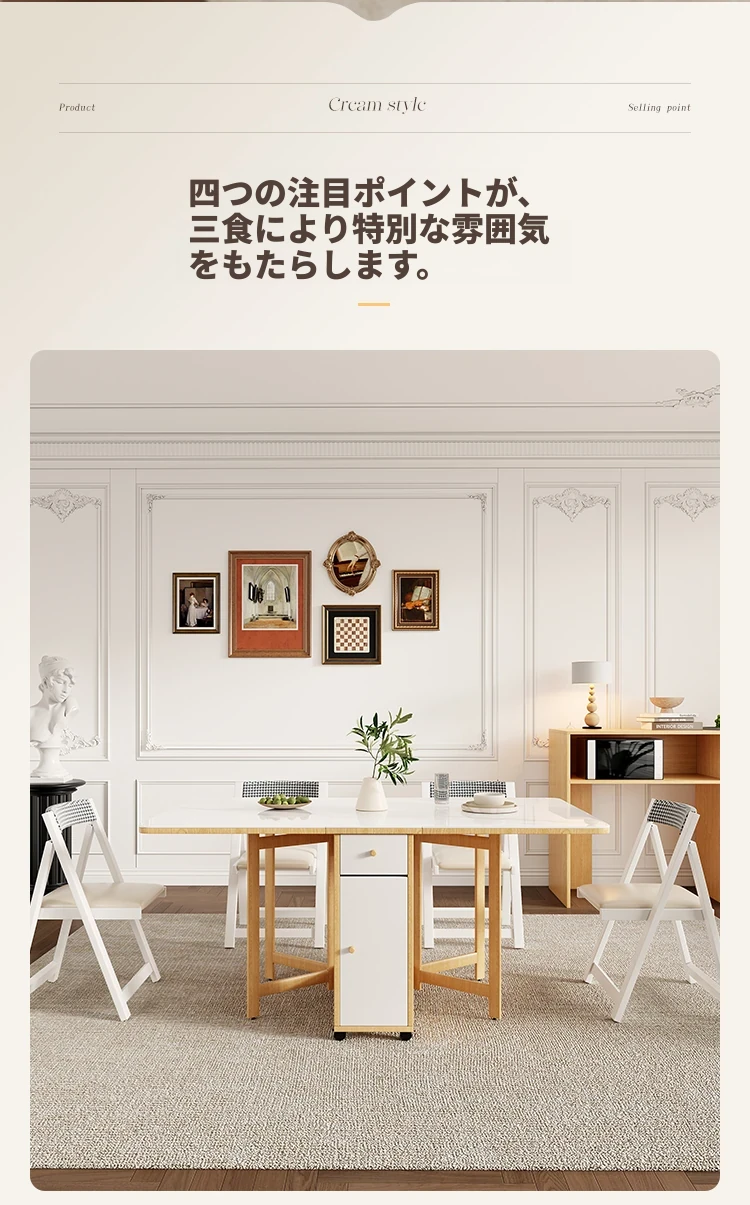【香港送料無料】小スペースに最適!現代的でシンプルなクリーム風折りたたみダイニングテーブル - コンパクト収納&伸縮可能な長方形デザインで、食事を楽しむ新しいスタイルを提案!