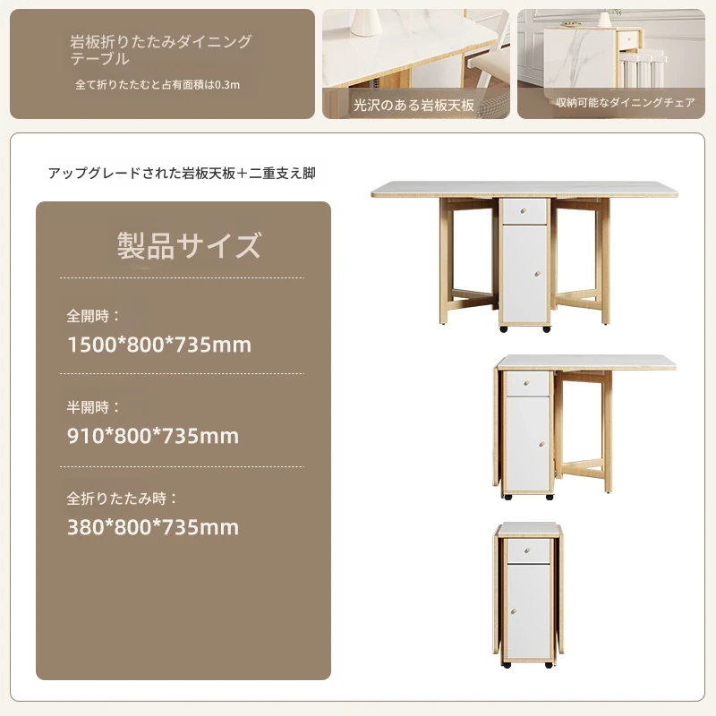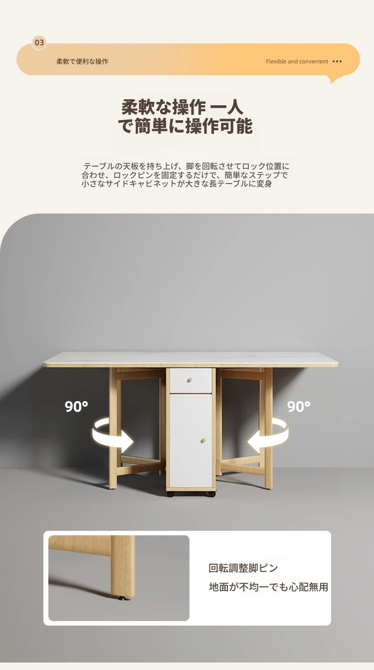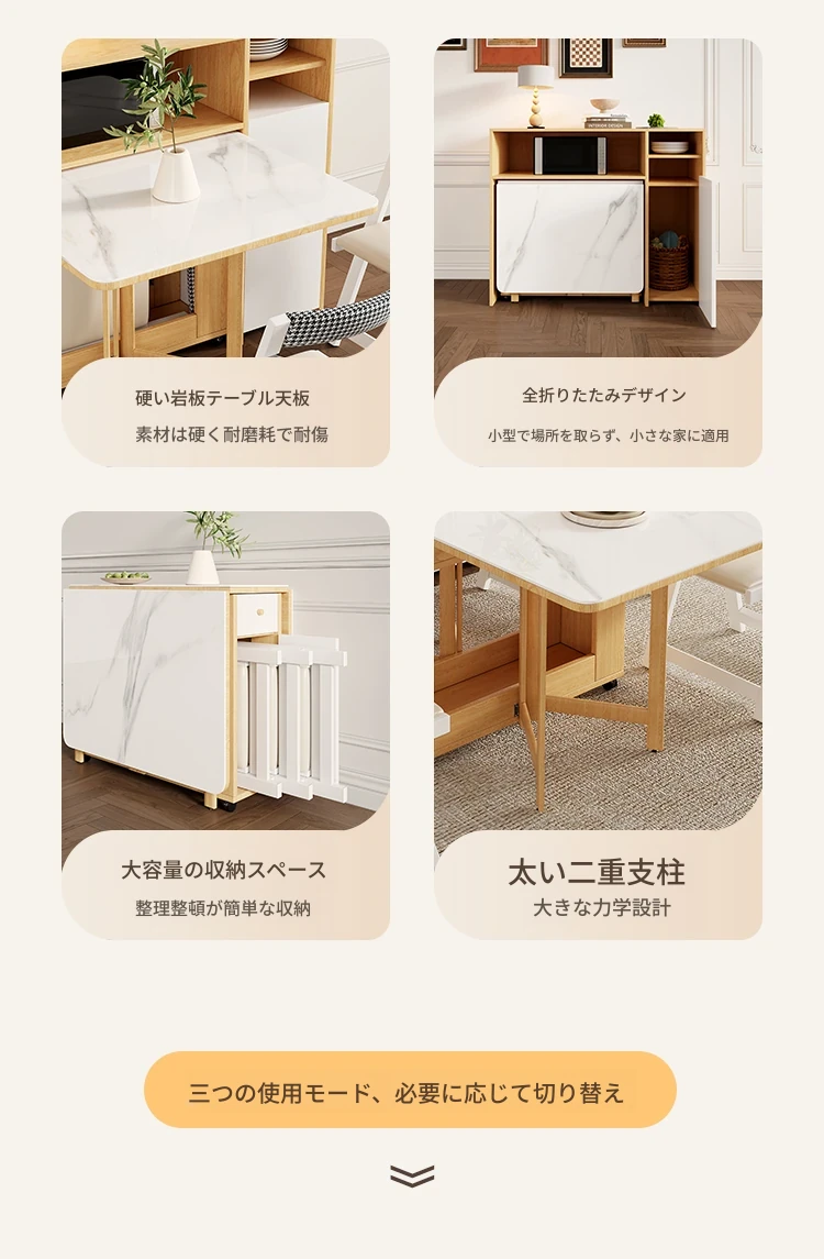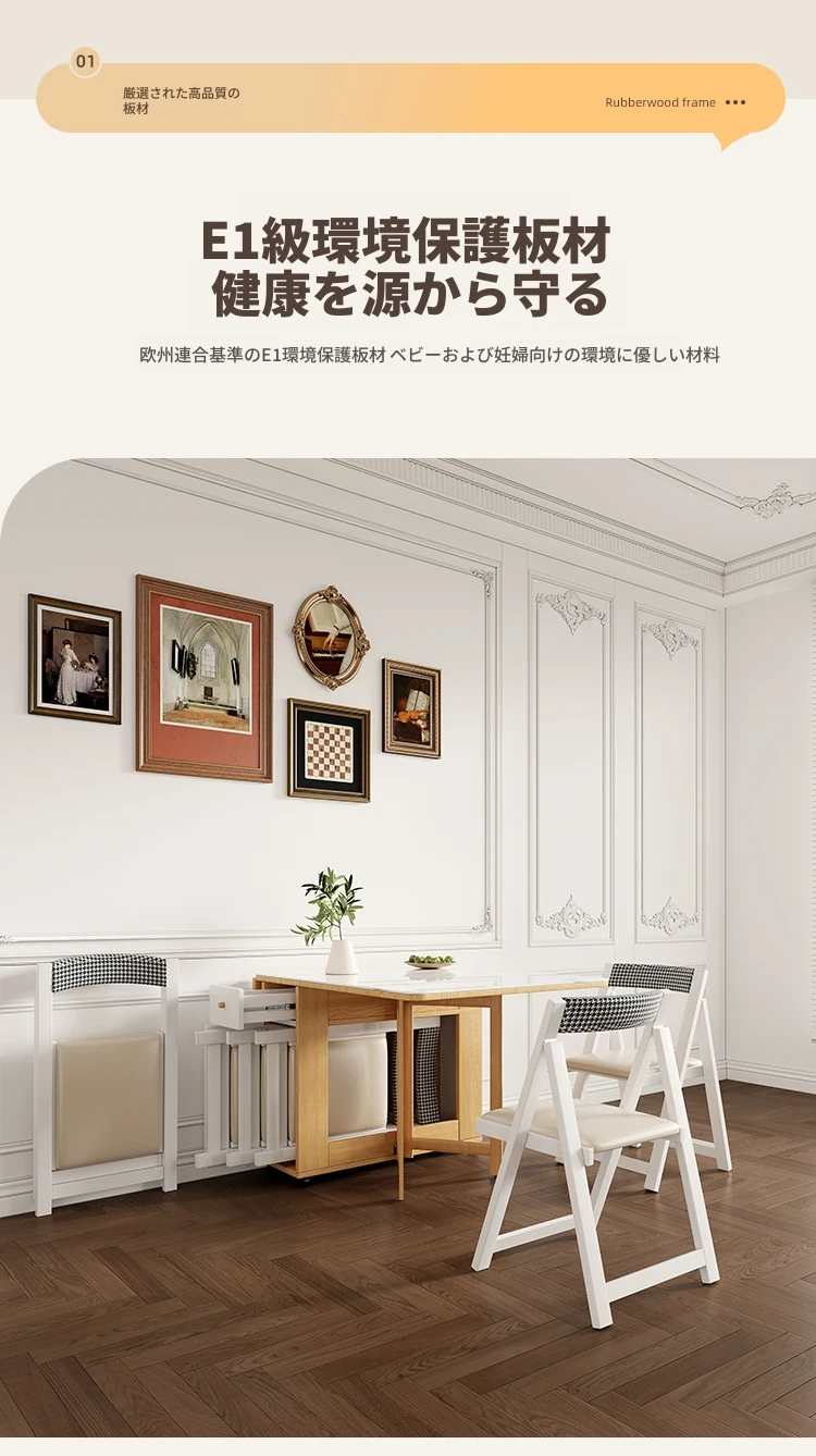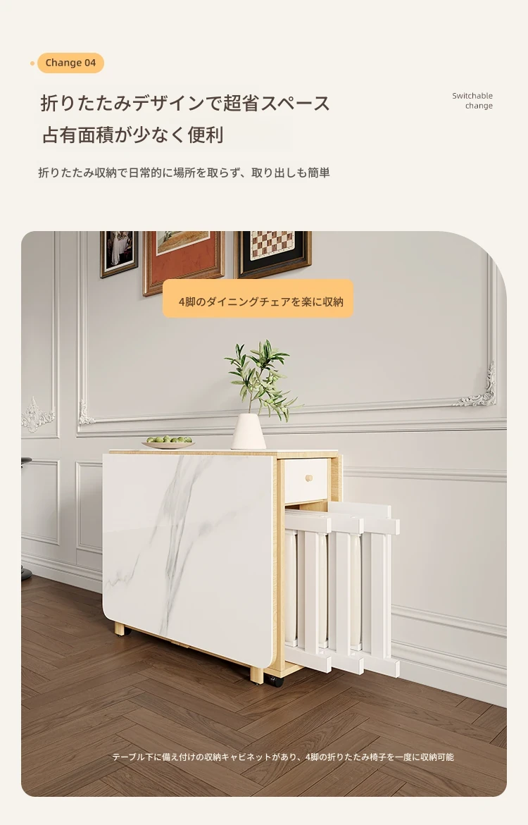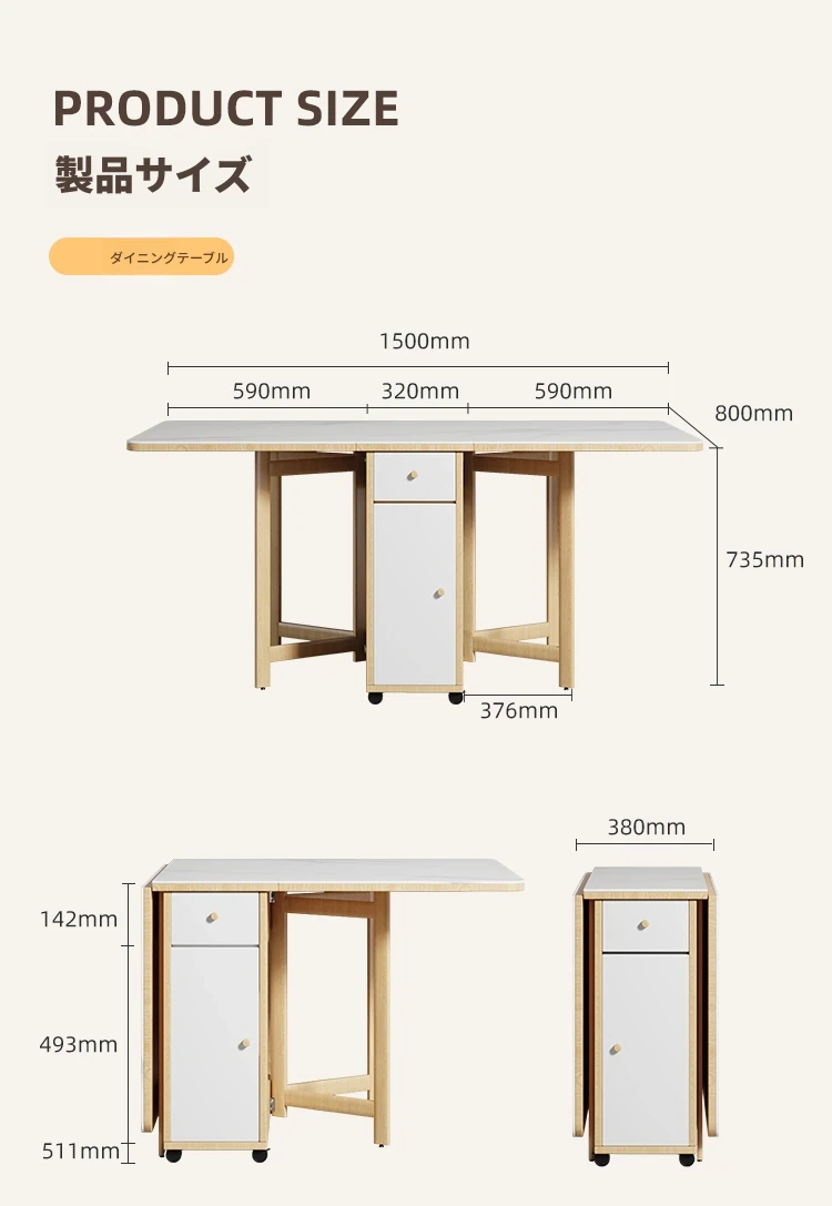 【香港送料無料】小スペースに最適!現代的でシンプルなクリーム風折りたたみダイニングテーブル - コンパクト収納&伸縮可能な長方形デザインで、食事を楽しむ新しいスタイルを提案!
