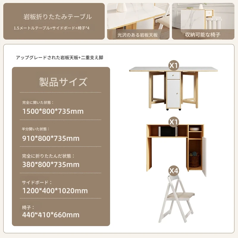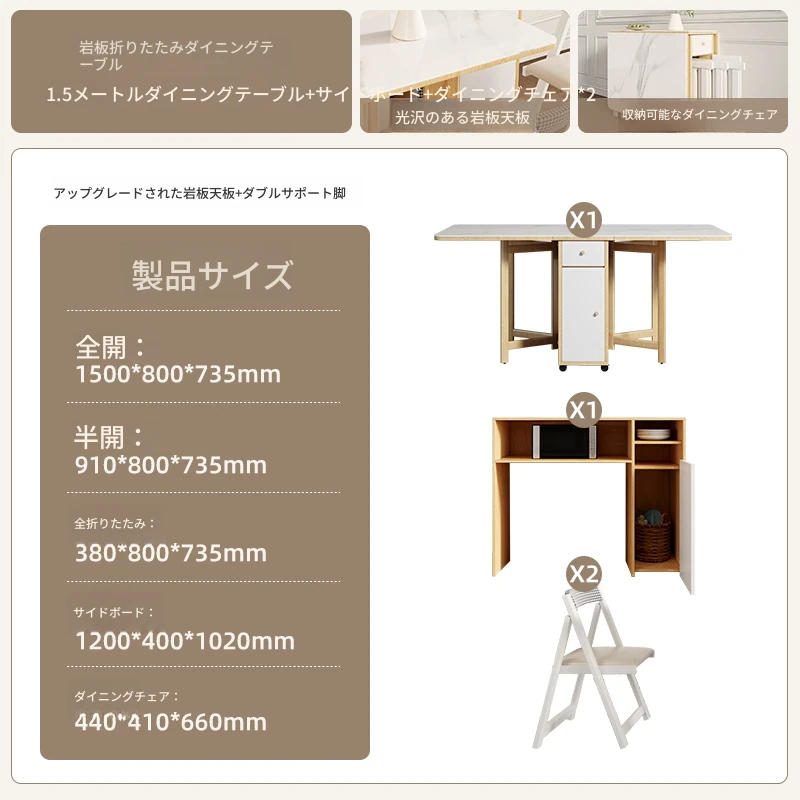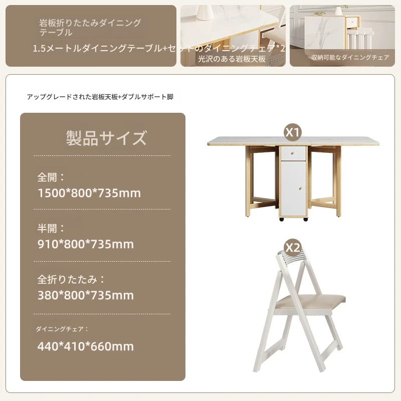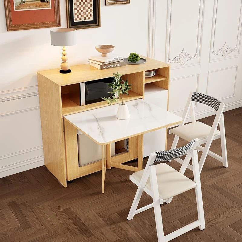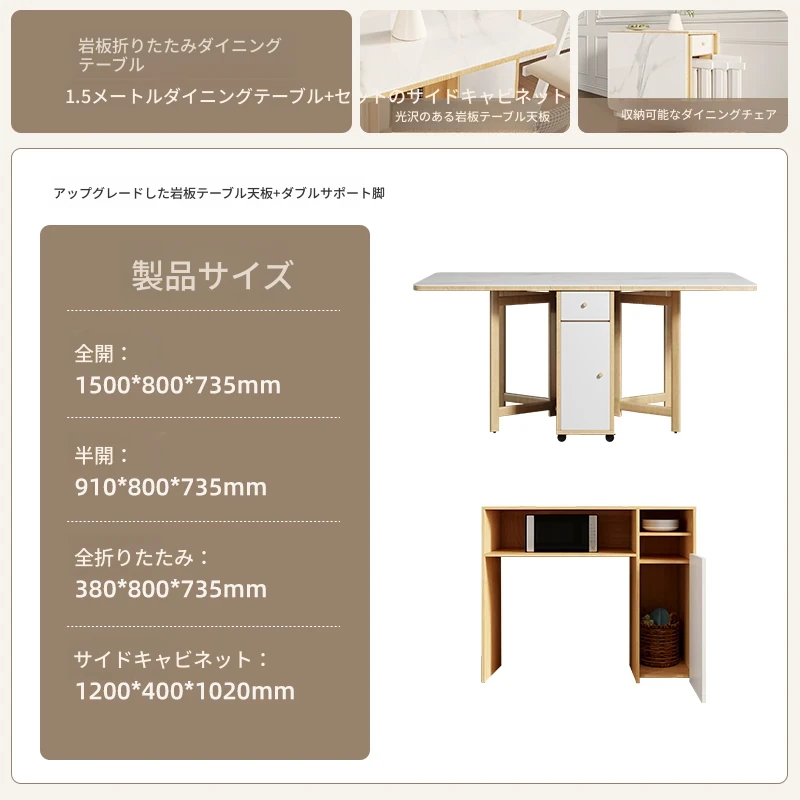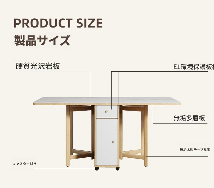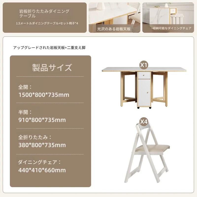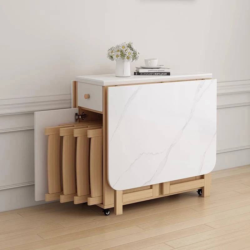 【香港送料無料】小スペースに最適!現代的でシンプルなクリーム風折りたたみダイニングテーブル - コンパクト収納&伸縮可能な長方形デザインで、食事を楽しむ新しいスタイルを提案!
