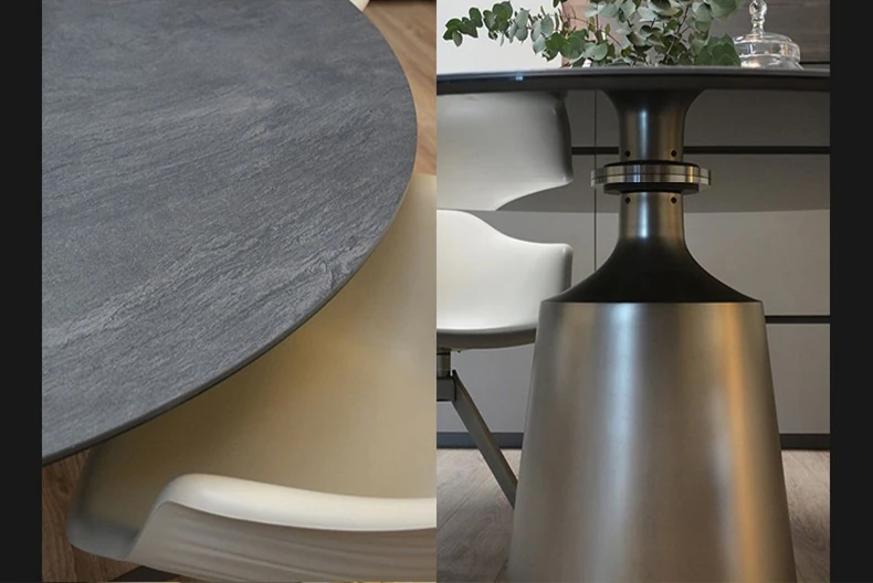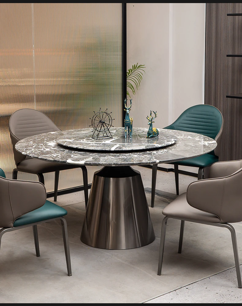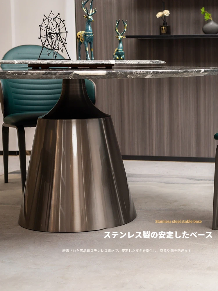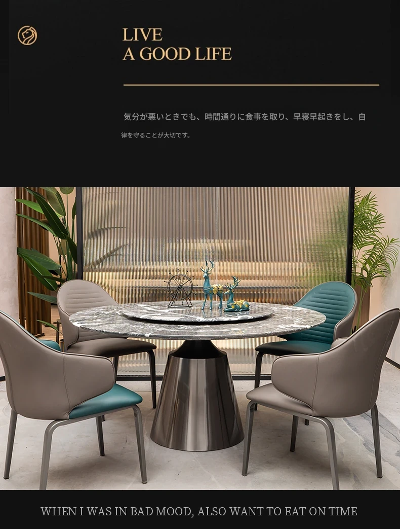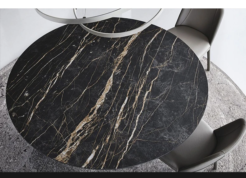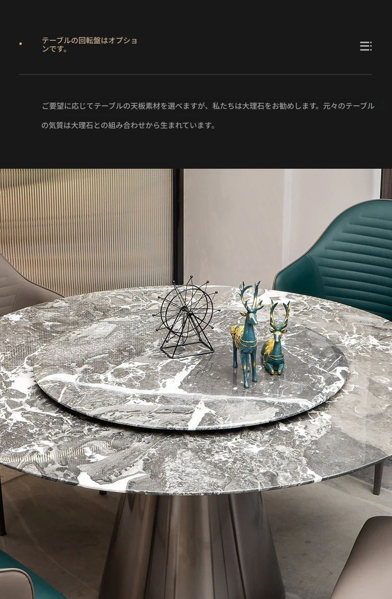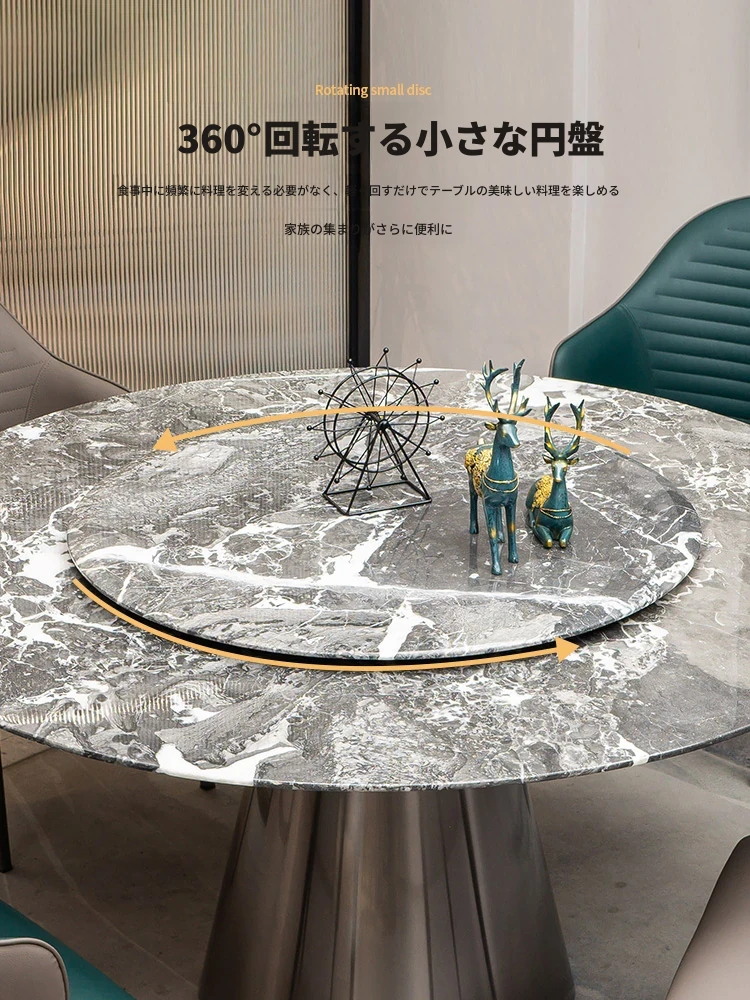 イタリアンラグジュアリー大理石ダイニングテーブル - 小さな家にぴったりの軽やかでスタイリッシュな回転円卓!現代的なシンプルデザイン、テーブルとチェアのセットで、居心地の良い食卓を演出します。