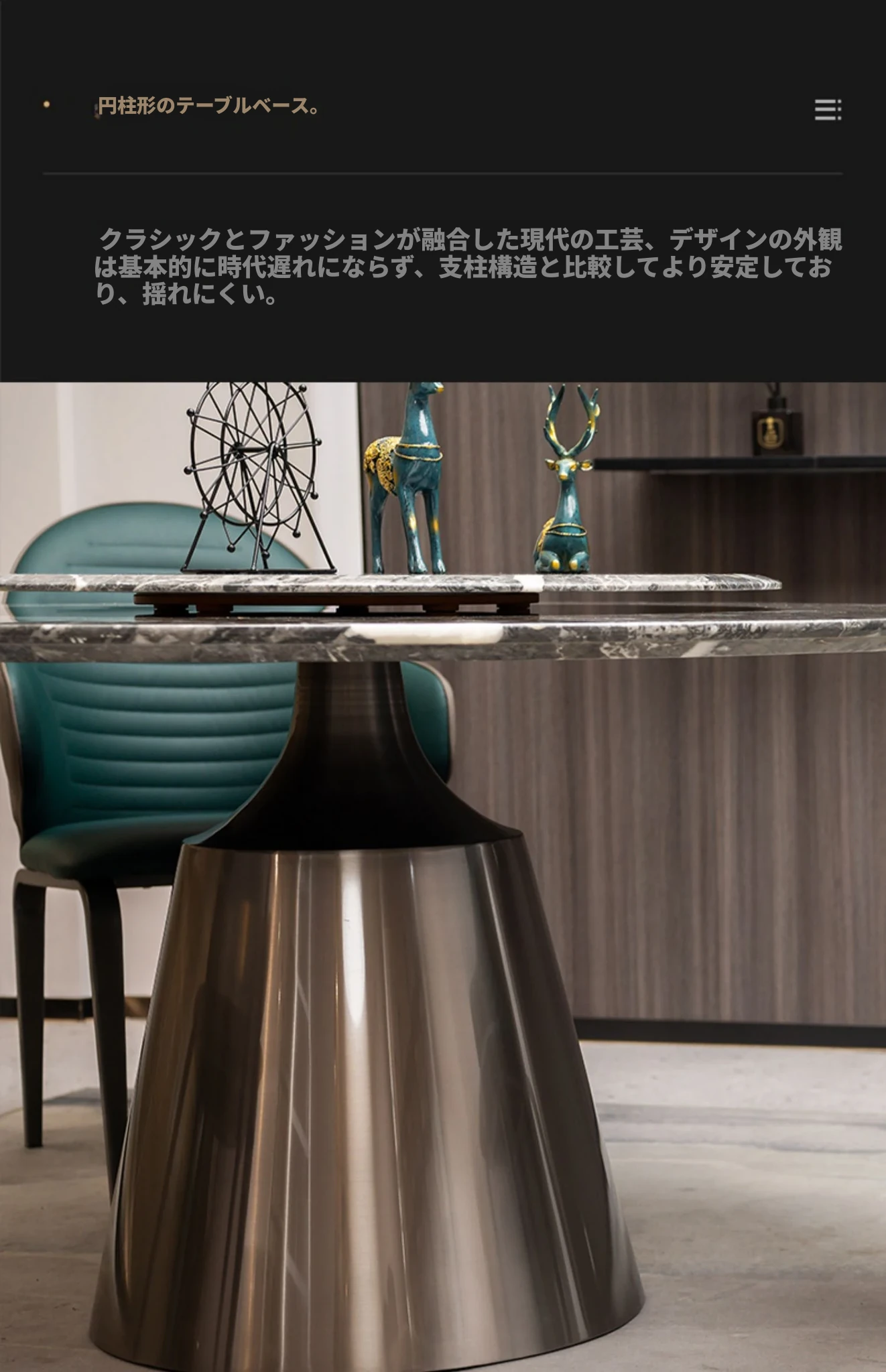 様々なダイニングテーブルのベースをカスタマイズ可能/詳細はカスタマーサービスにお問い合わせください