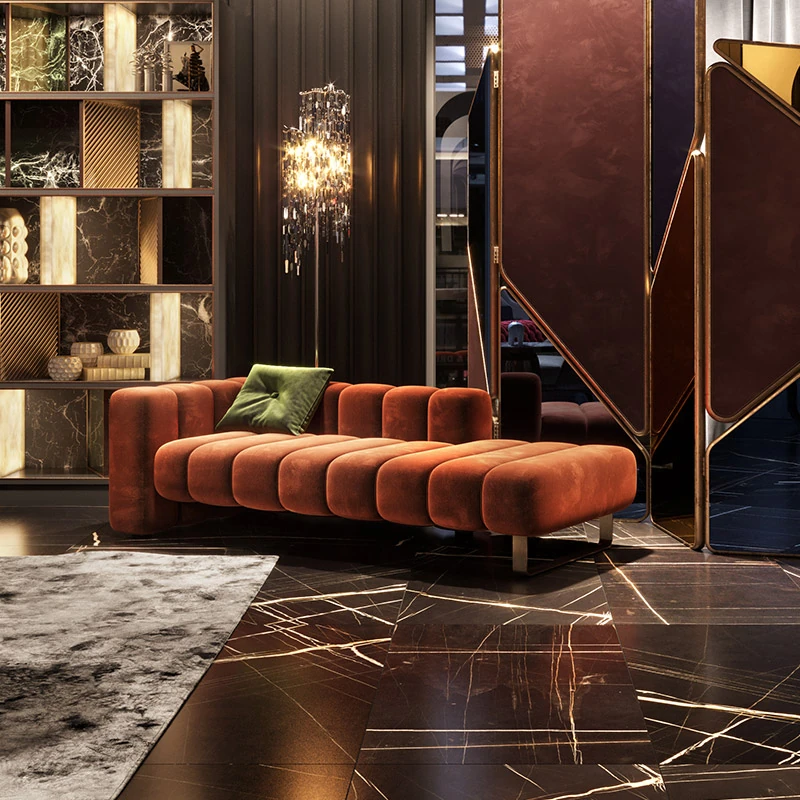 イタリアンラグジュアリーのベルベット製カウチチェア - 北欧スタイルのコンパクトなリビングに最適!玄関やベッドサイドにぴったりなクリエイティブな長椅子として、靴を履く際の便利なアイテムです。おしゃれで機能的な一品を手に入れましょう!