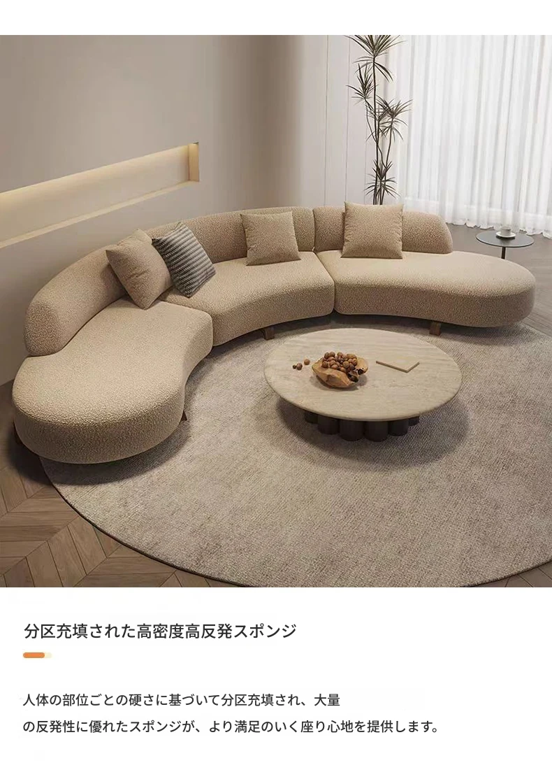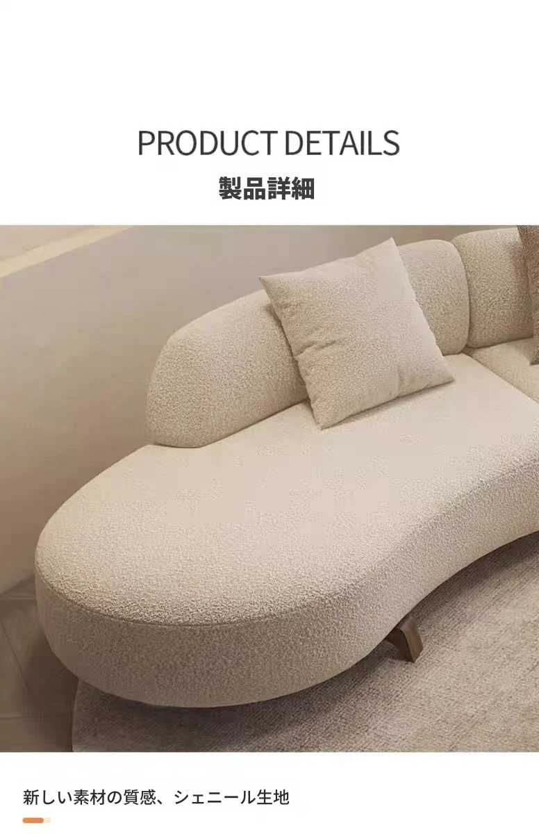 イタリアンミニマリストアーチ型デザイン、侘寂スタイルの新作ソファ。広々としたリビングにぴったりなラグジュアリーなネット人気のクリームトーン。洗練された雰囲気で、居心地の良い空間を演出します。