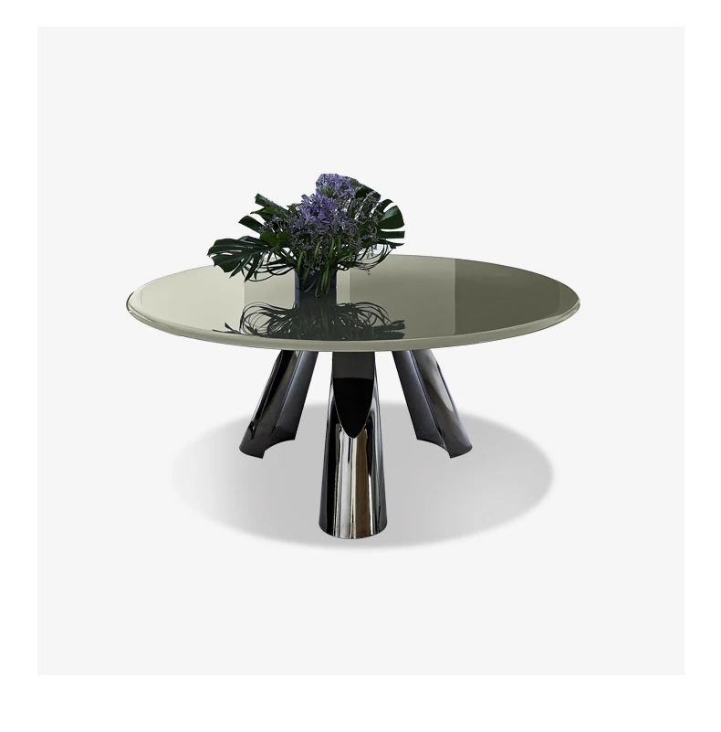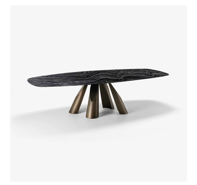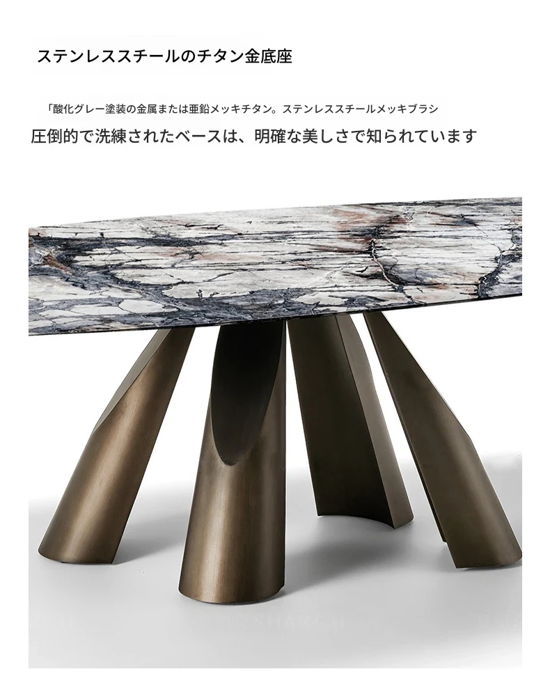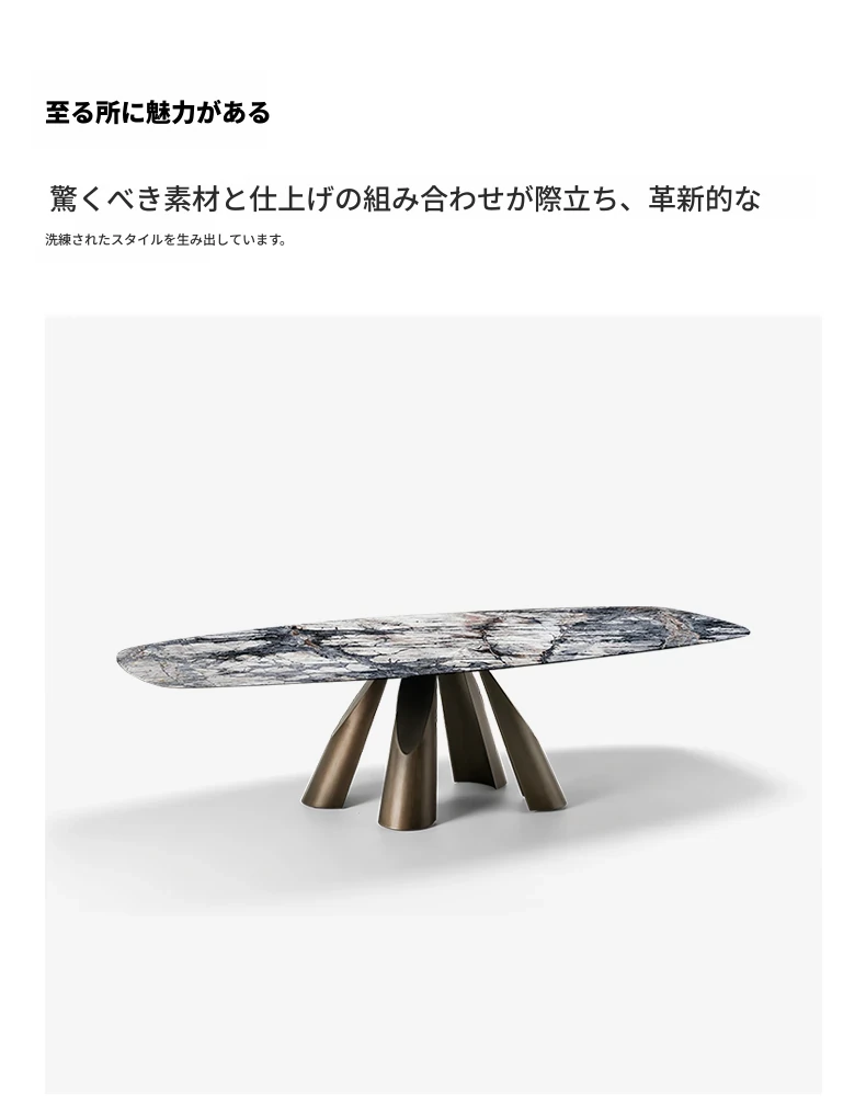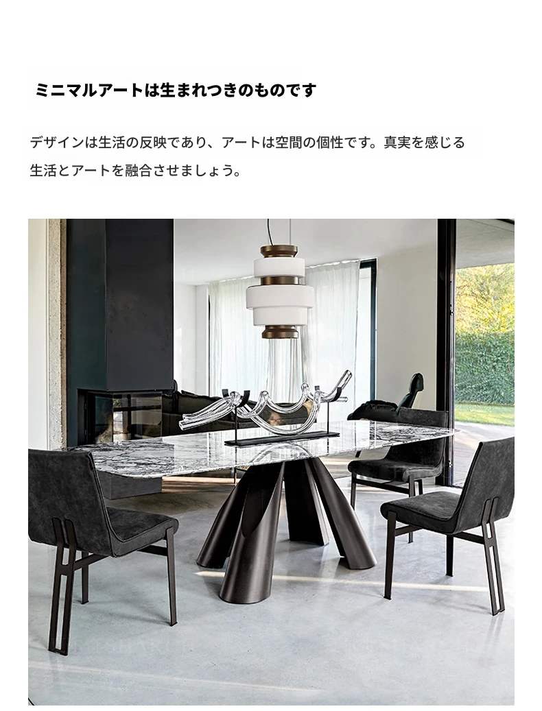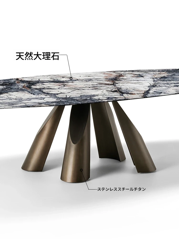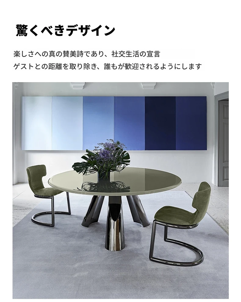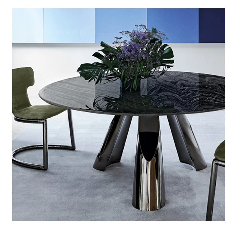 イタリアン・ラグジュアリー・ミニマリストのダイニングテーブルセット - 高級大理石のラウンドテーブルと椅子のコンビネーション、大型住宅に最適な長方形の食卓。優雅さと実用性を兼ね備えた食事空間を演出します!