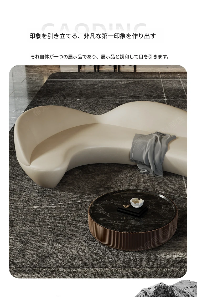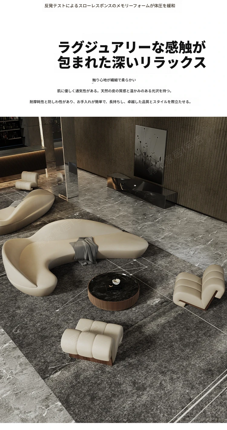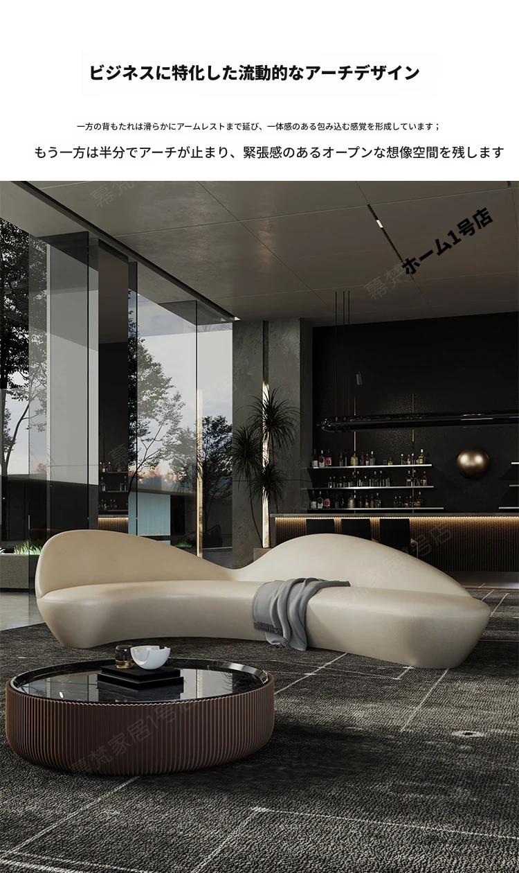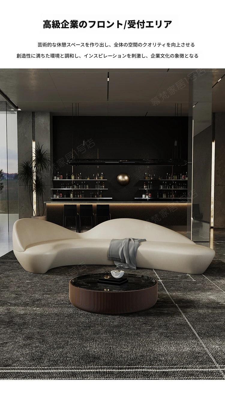ラウンドソファー型のユニークなラウンジスペース - 高級感あふれるホテルのロビーや販売所、クラブ、オフィスの会談用に最適!おしゃれで居心地の良い空間を演出します。