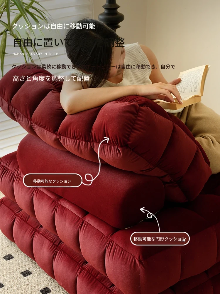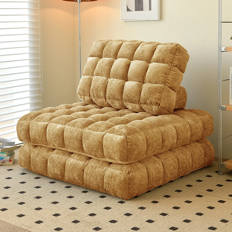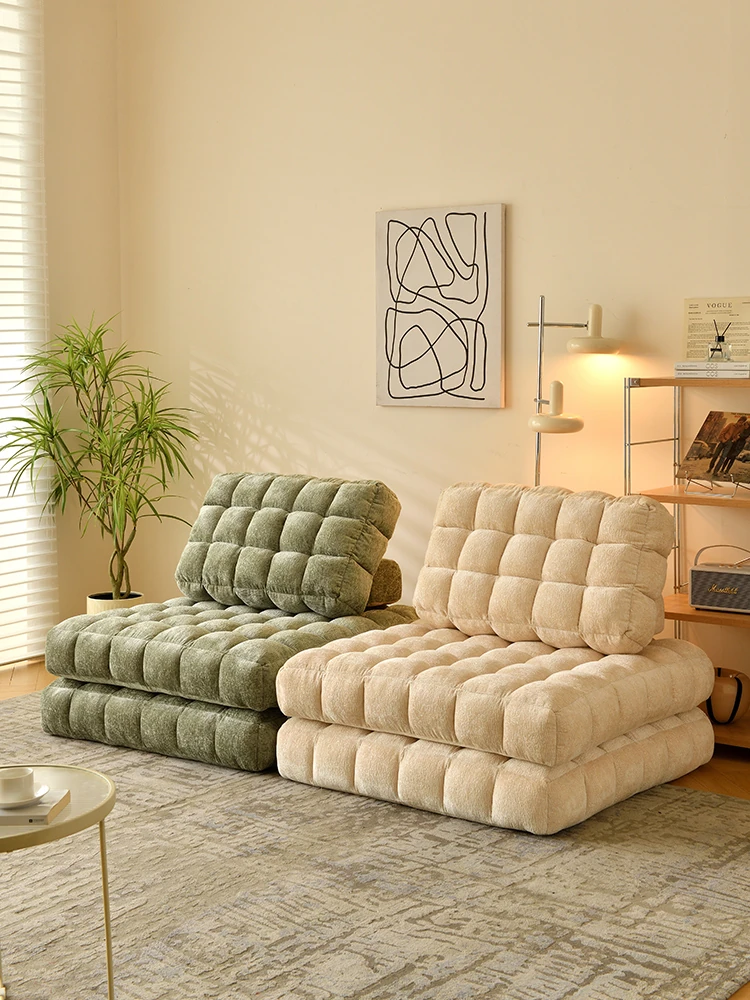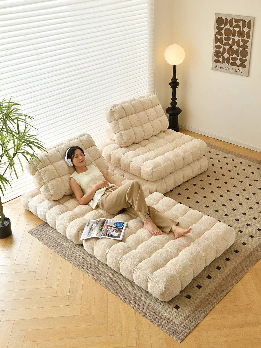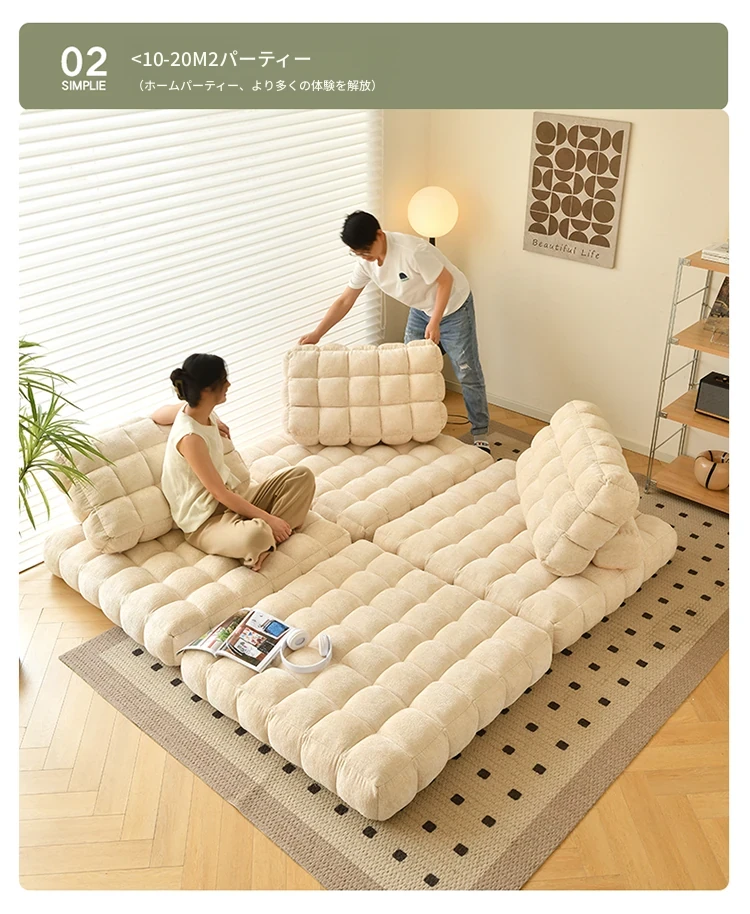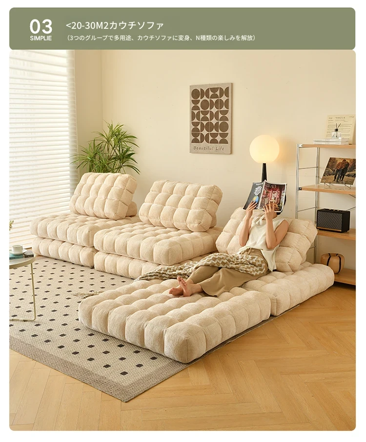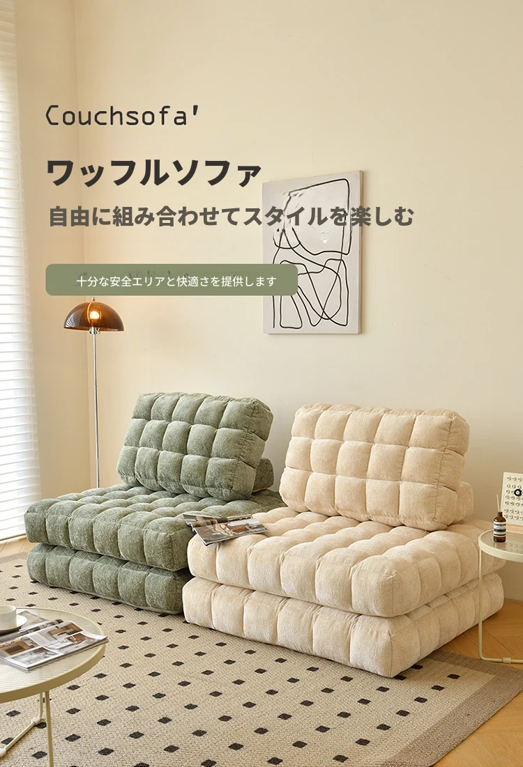 シンプルでおしゃれなワッフル生地のリラックスソファ!リビングにぴったりな豆腐型モジュール、寝転がったり、くつろいだりできるタタミスタイル。クリーミーな風合いで、心地よいひとときを提供します!