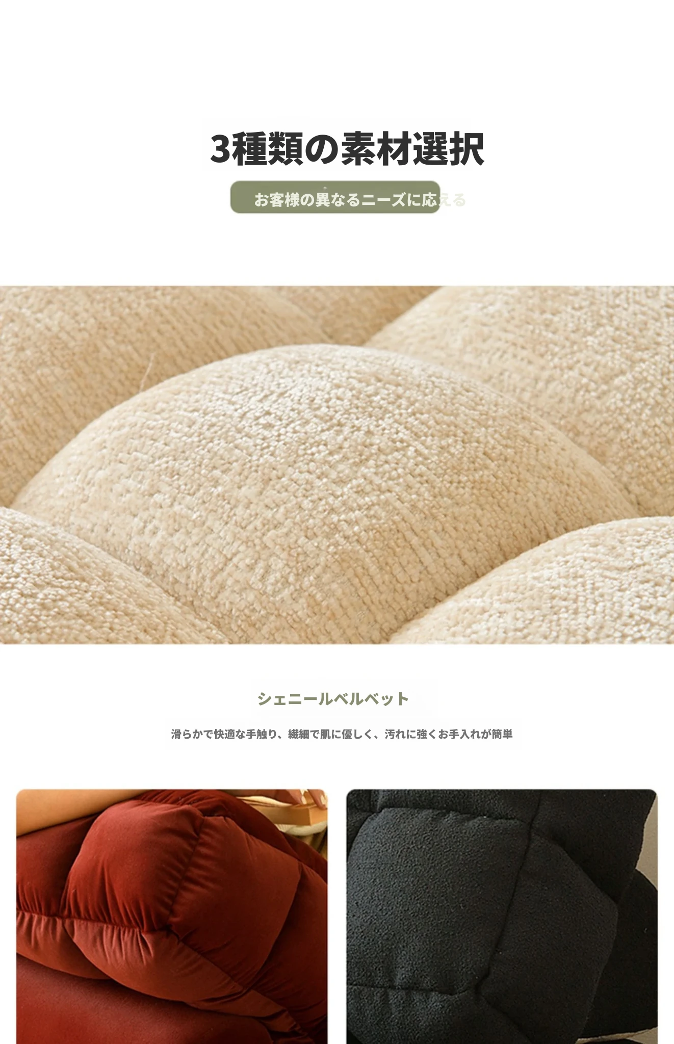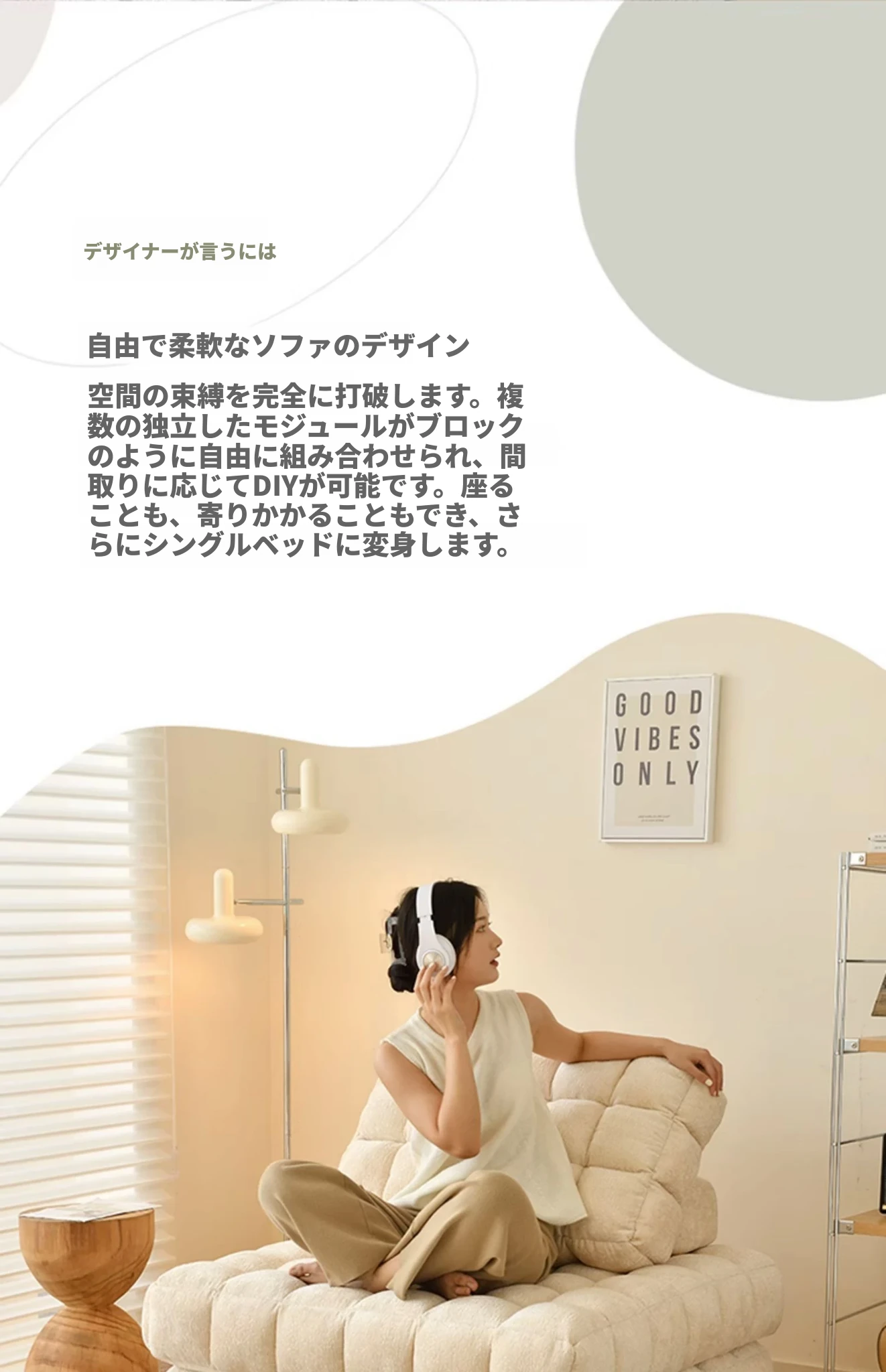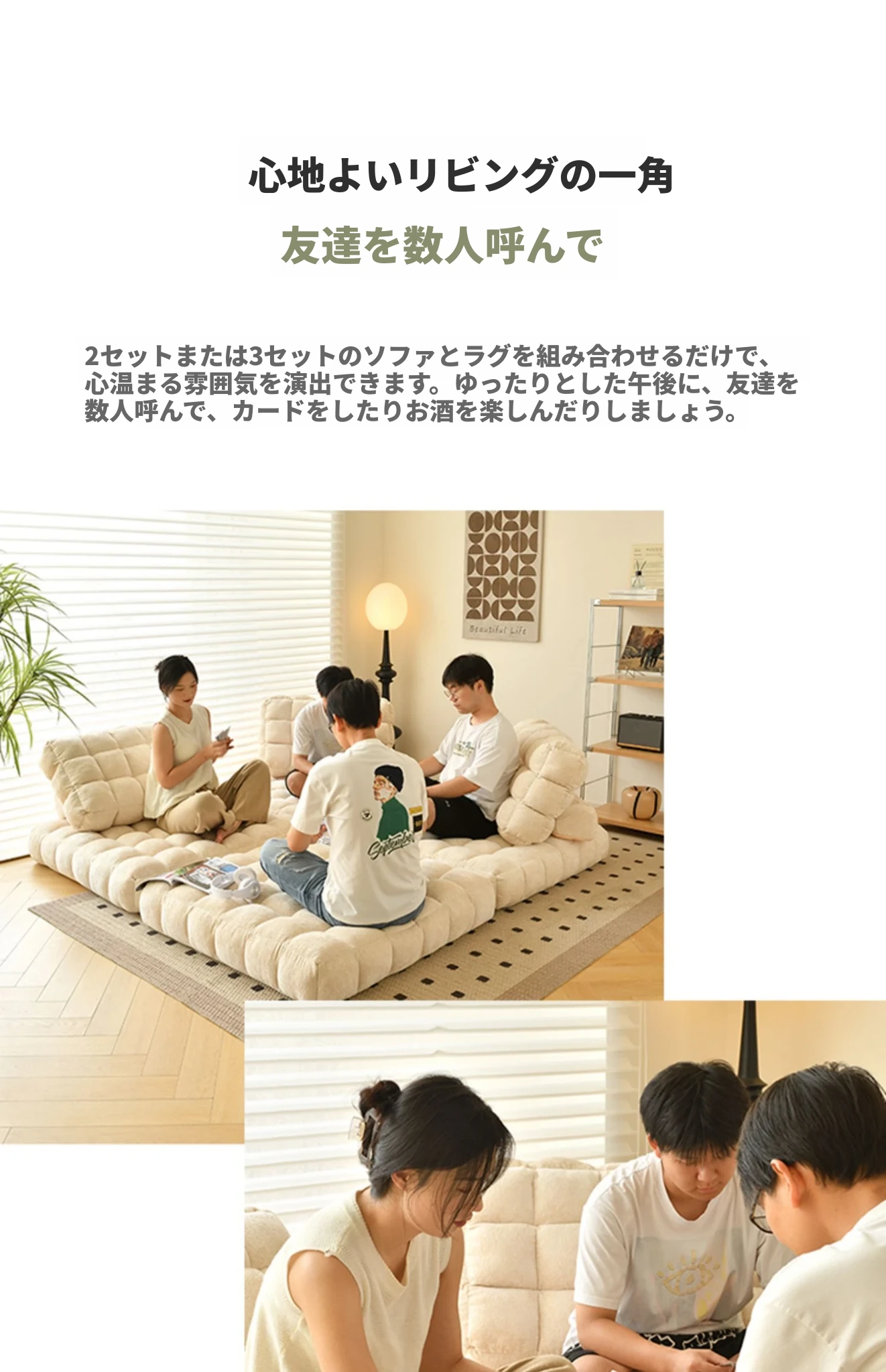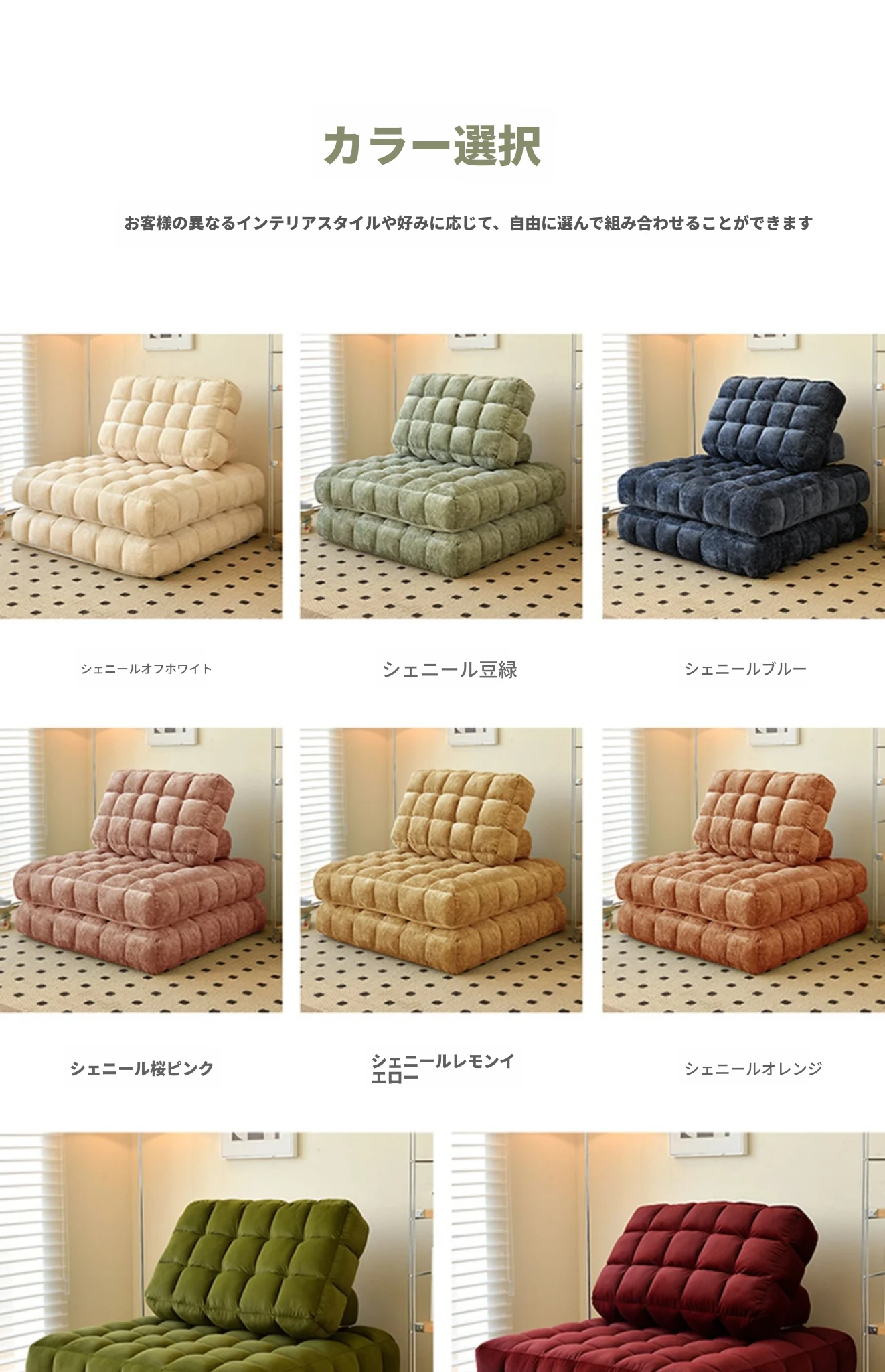 シンプルでおしゃれなワッフル生地のリラックスソファ!リビングにぴったりな豆腐型モジュール、寝転がったり、くつろいだりできるタタミスタイル。クリーミーな風合いで、心地よいひとときを提供します!