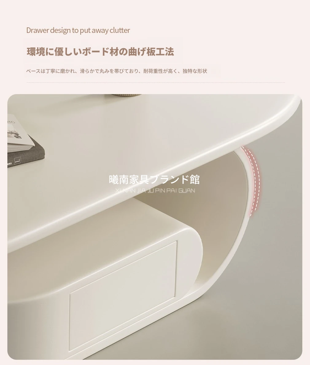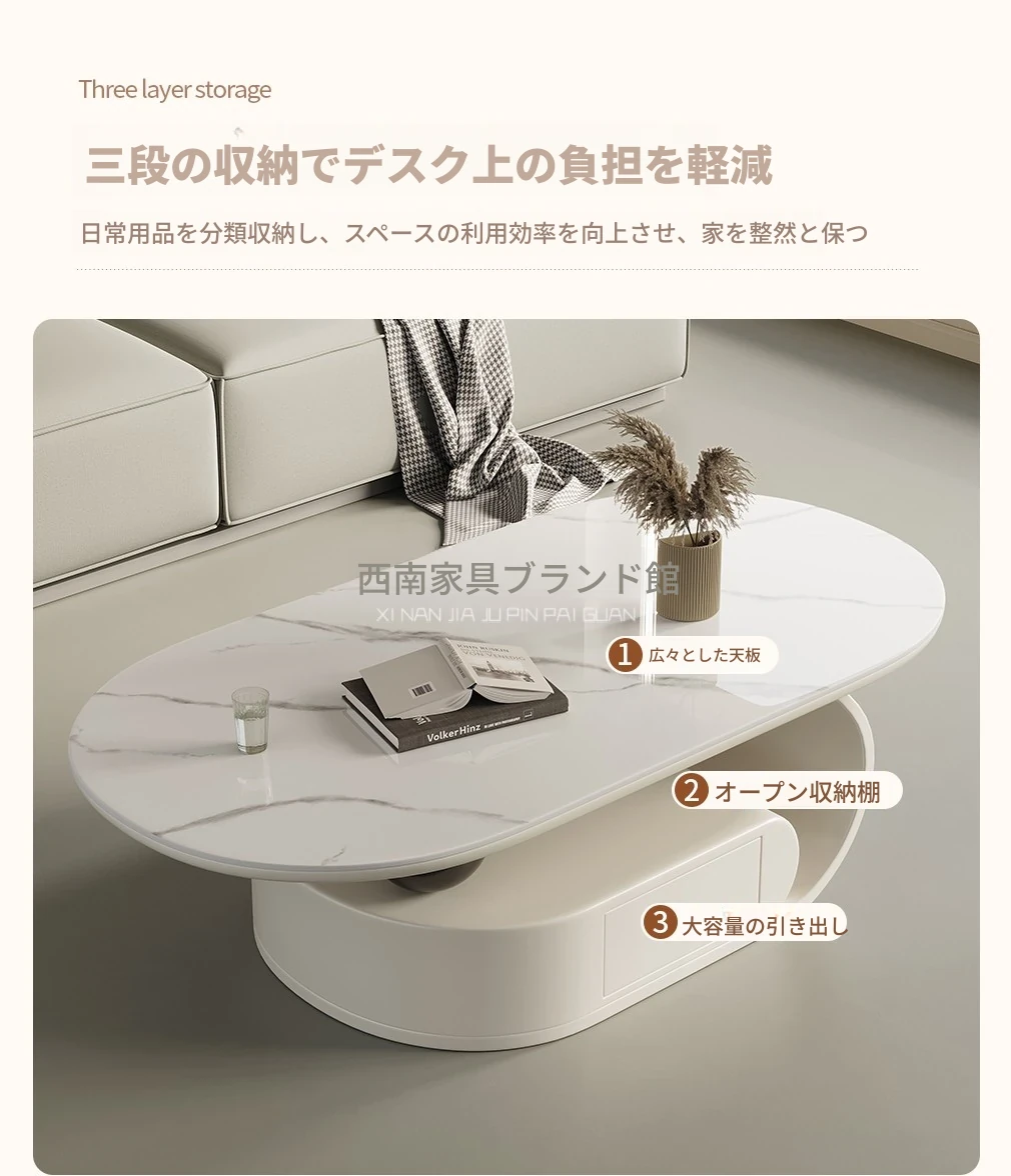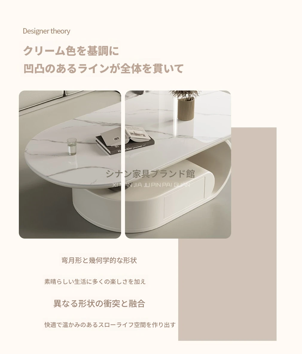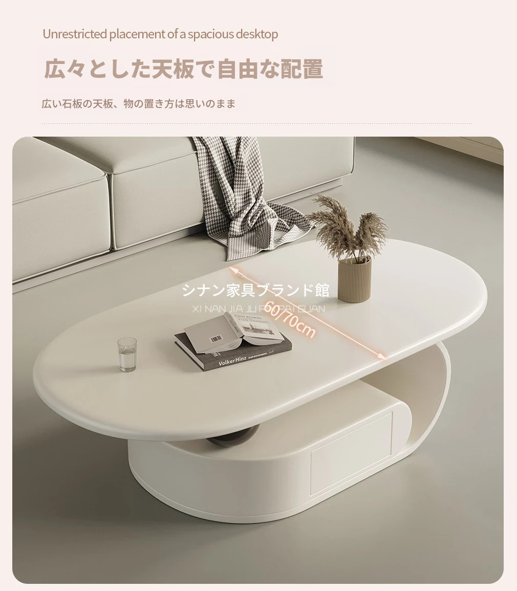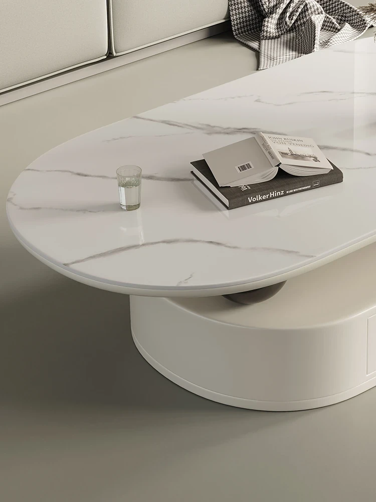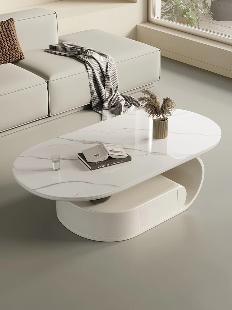 国補モダンミニマリスト岩板オーバル型家庭用多機能コーヒーテーブル、リビングルームにぴったり!クリーム風雲朵デザイン、2025年新作登場!