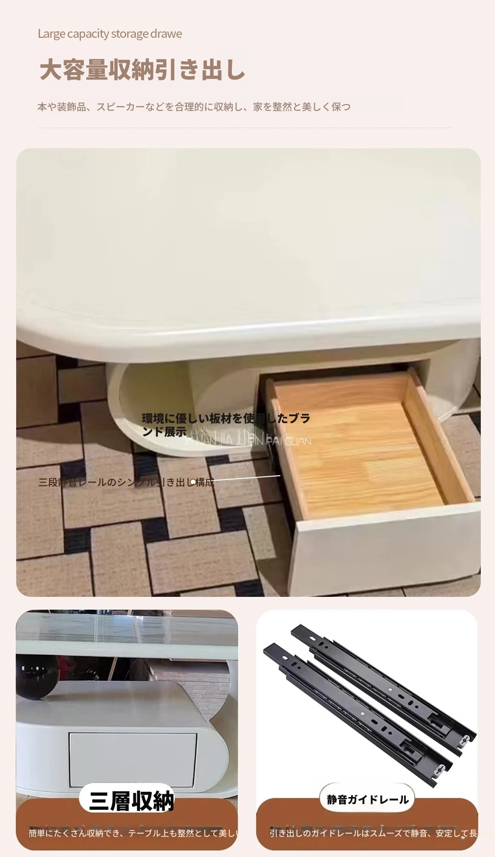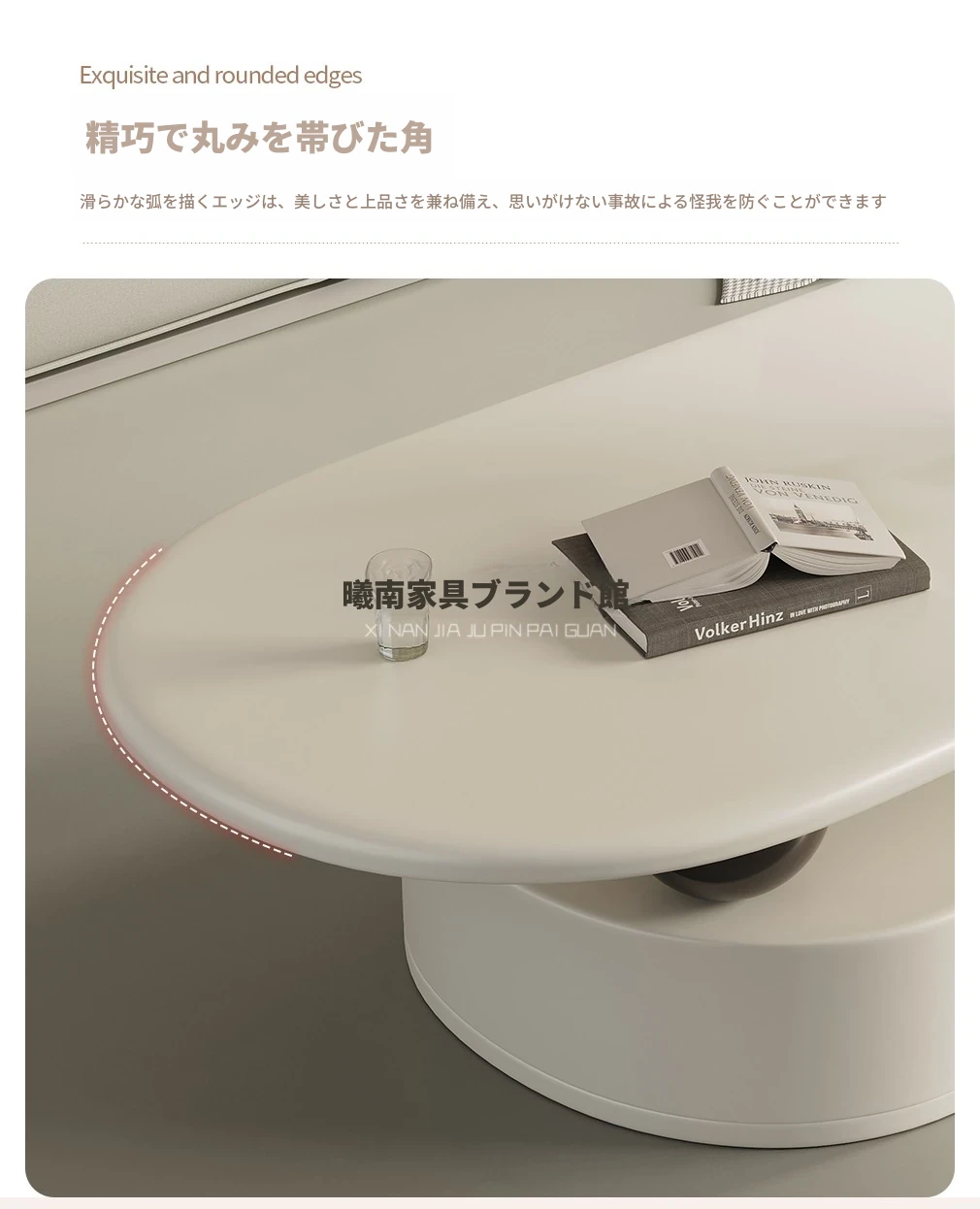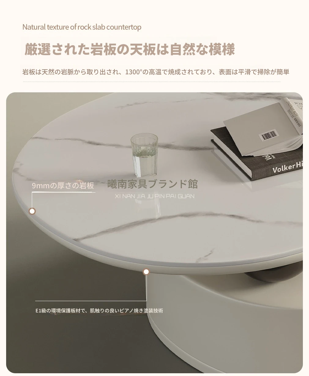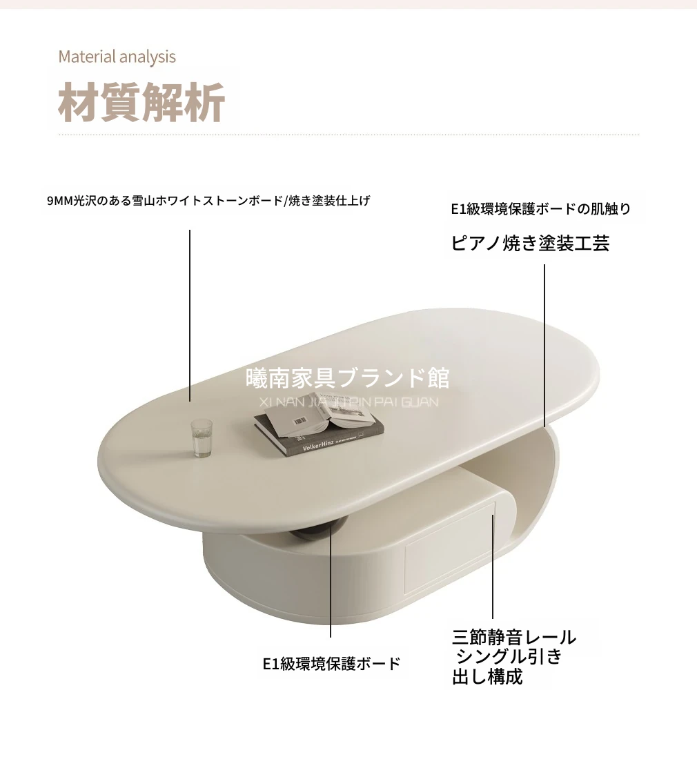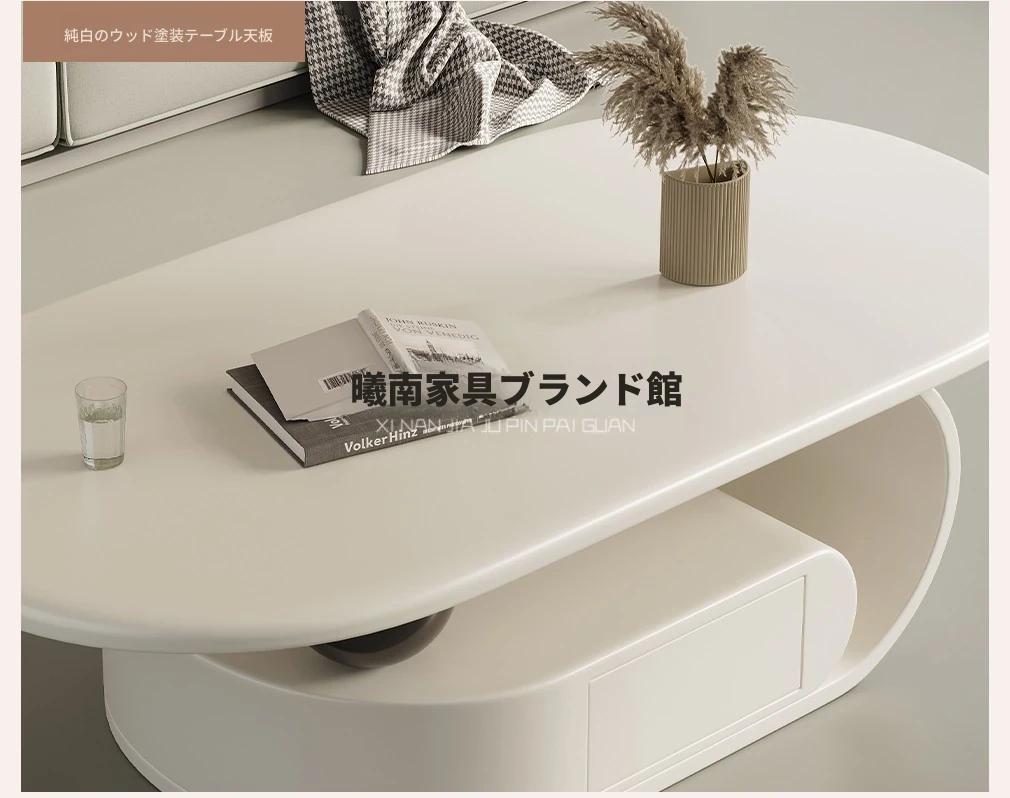 国補モダンミニマリスト岩板オーバル型家庭用多機能コーヒーテーブル、リビングルームにぴったり!クリーム風雲朵デザイン、2025年新作登場!