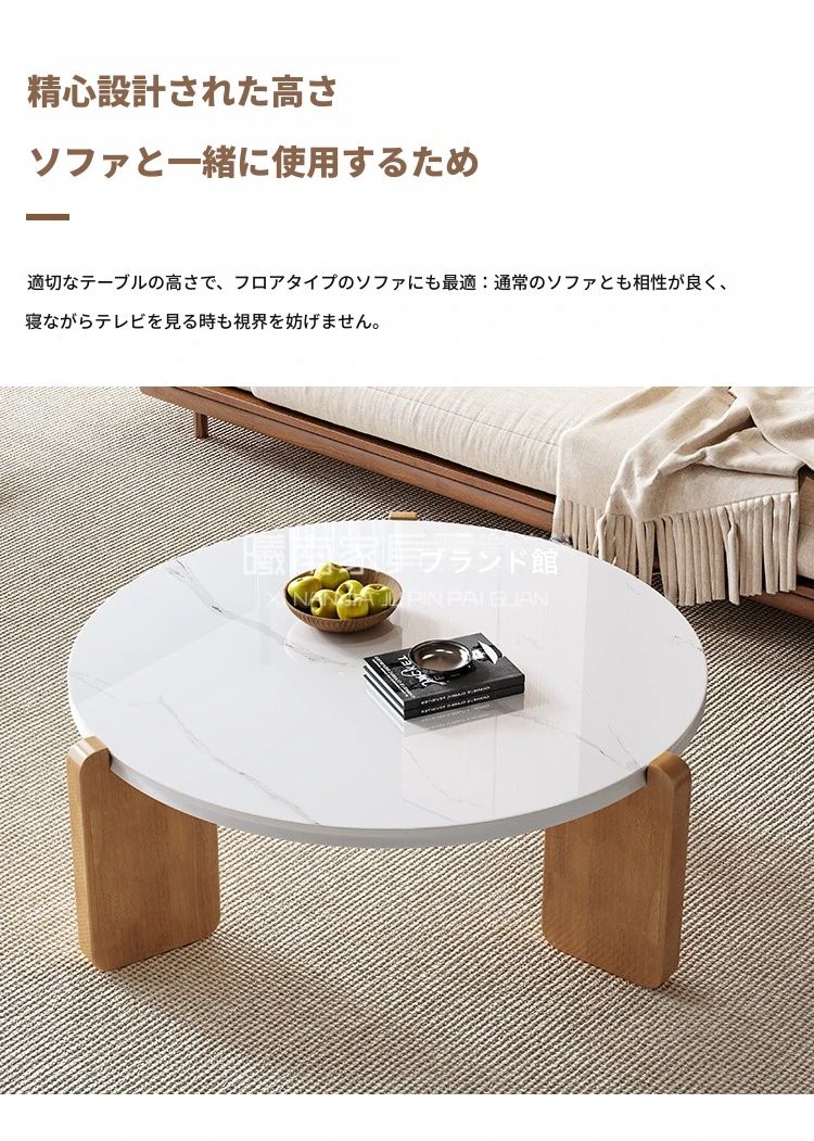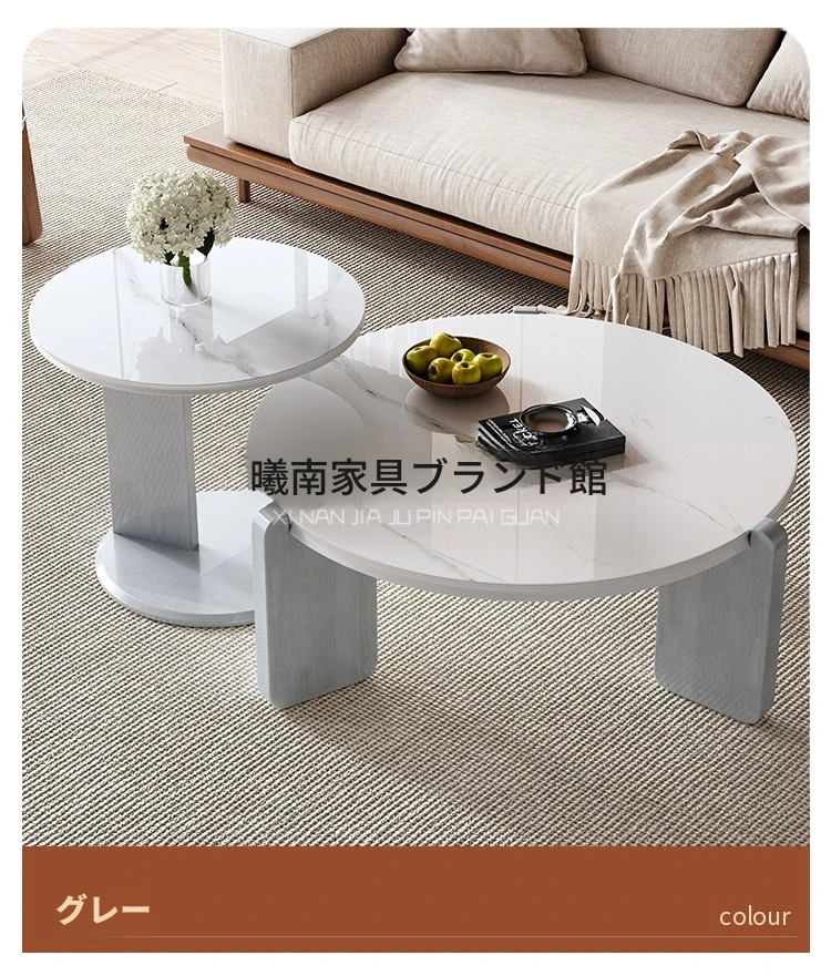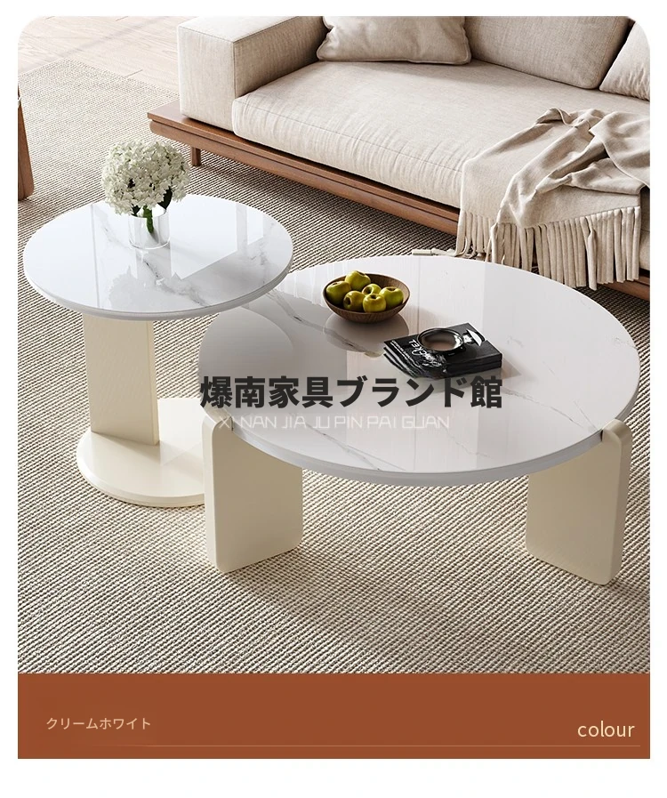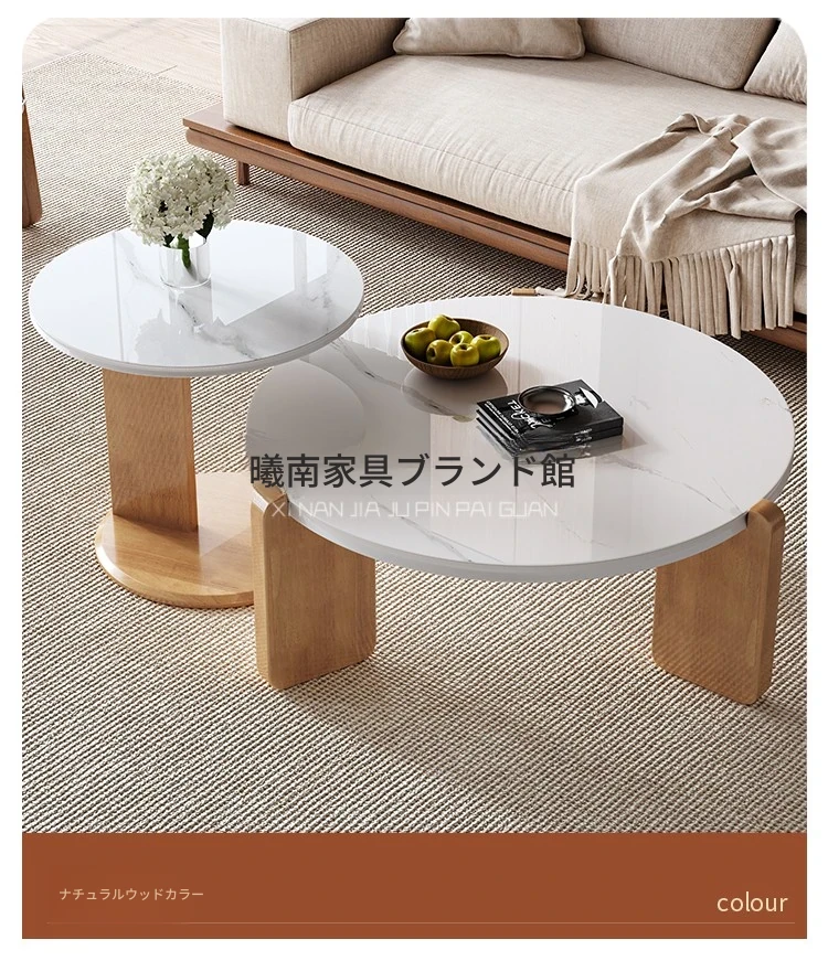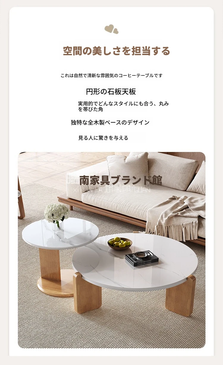 モダンデザインの新作リビング用コーヒーテーブル!高級感あふれるイタリアンストーンと天然木の組み合わせ、コンパクトなサイズで小さなお部屋にもぴったり。丸型で優雅な雰囲気を演出します。