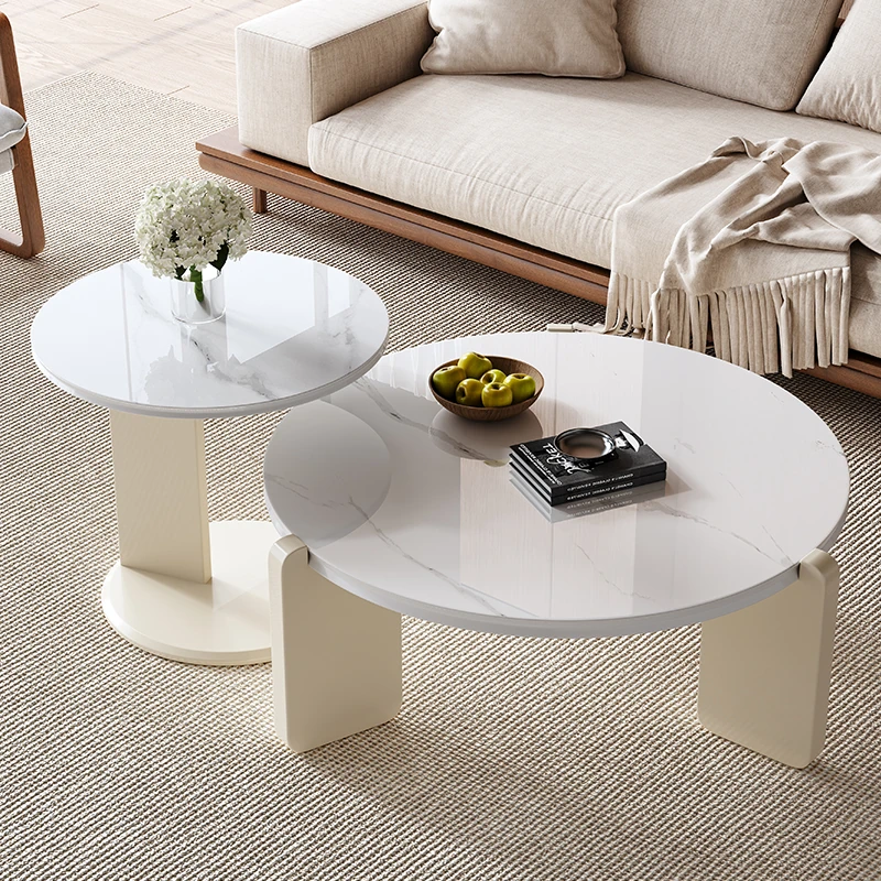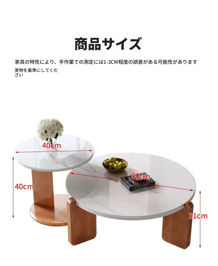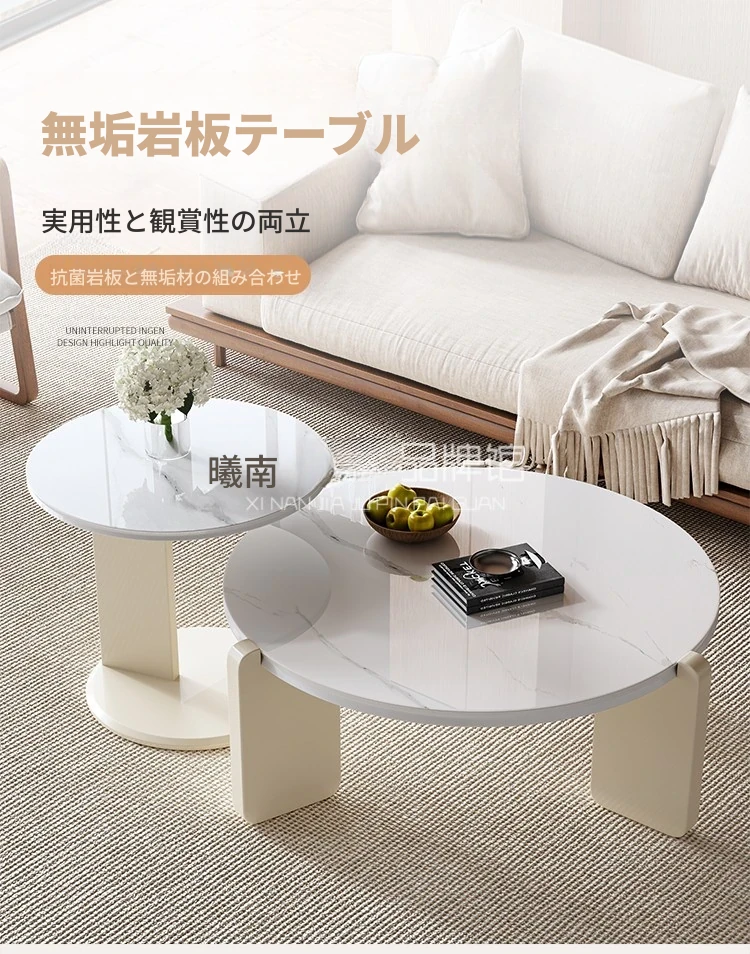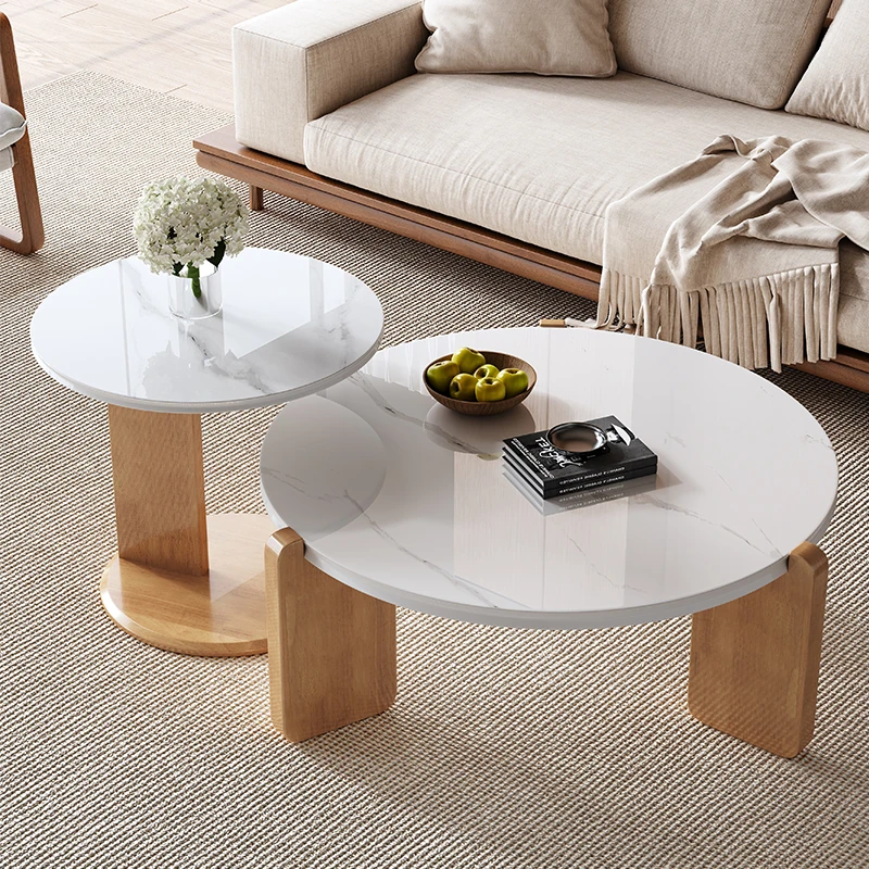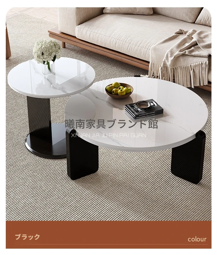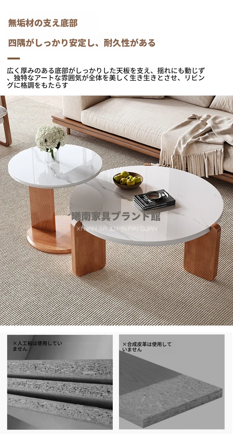 モダンデザインの新作リビング用コーヒーテーブル!高級感あふれるイタリアンストーンと天然木の組み合わせ、コンパクトなサイズで小さなお部屋にもぴったり。丸型で優雅な雰囲気を演出します。