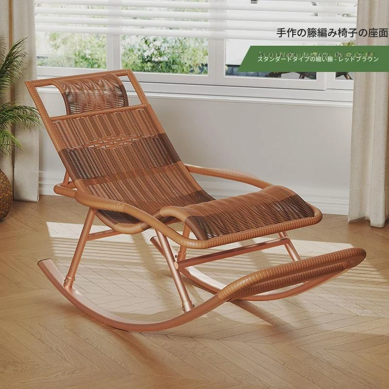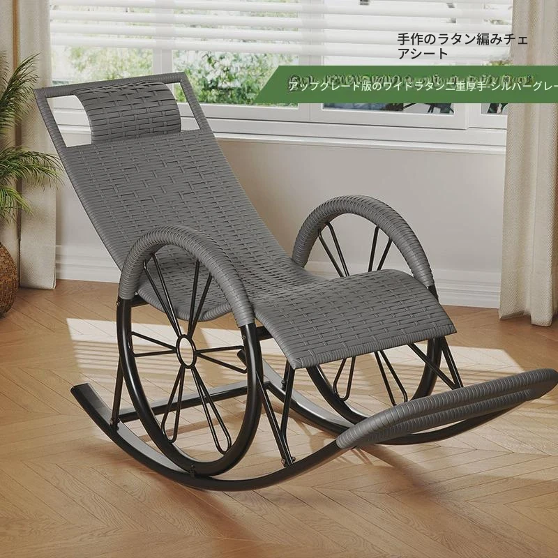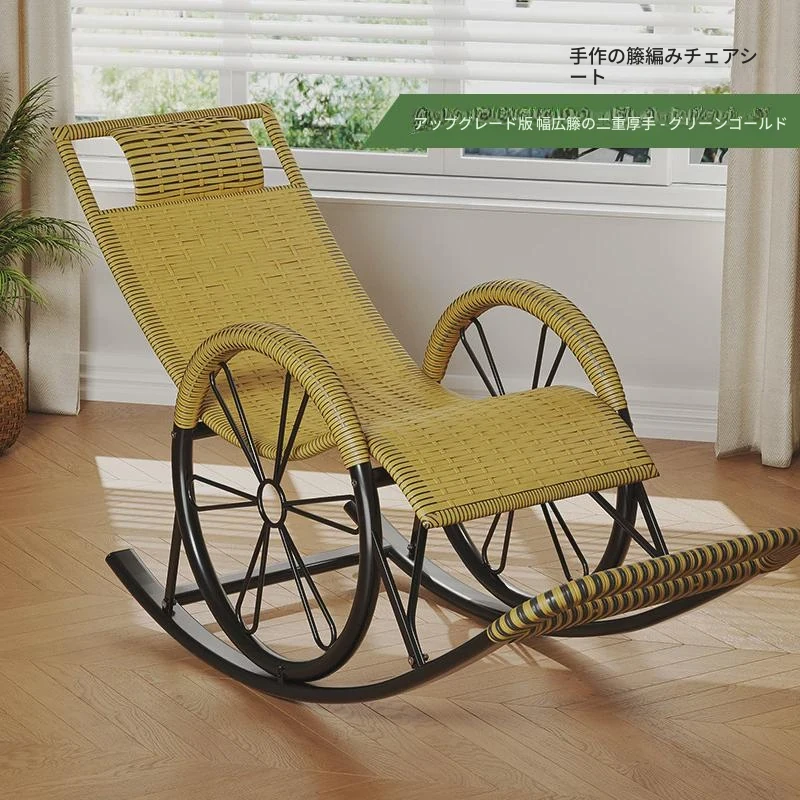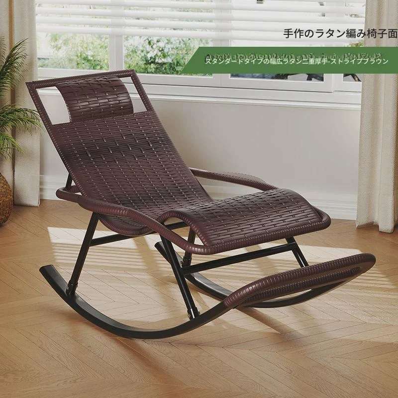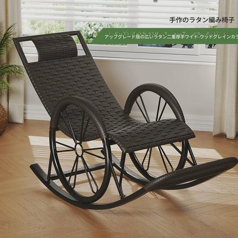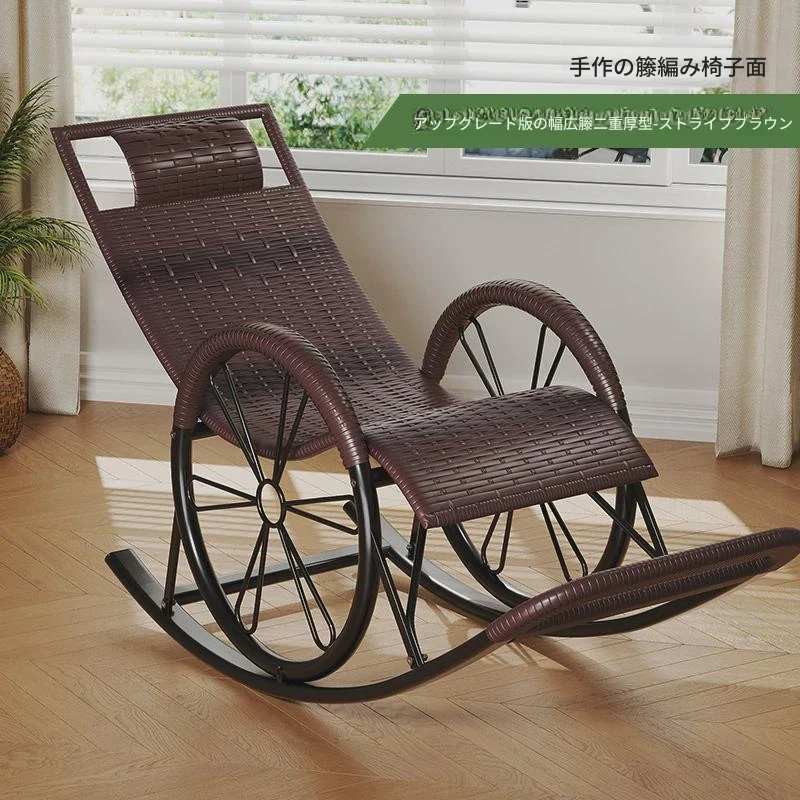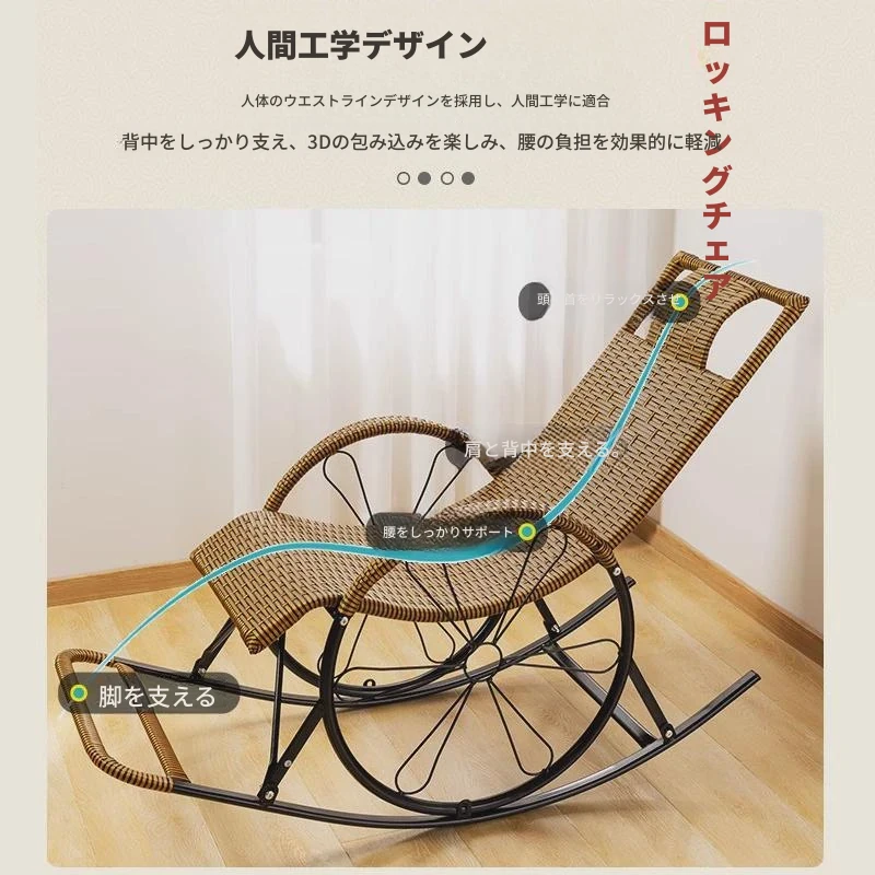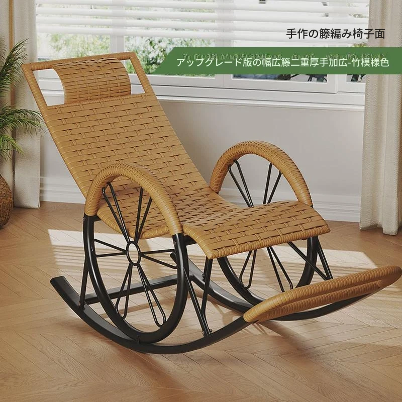 高齢者専用!快適なリクライニングチェア - 藤製の屋外用ロッキングチェア。防水・UVカットで、庭やベランダにぴったり。リラックスできる至福のひとときを提供します。