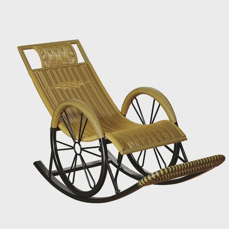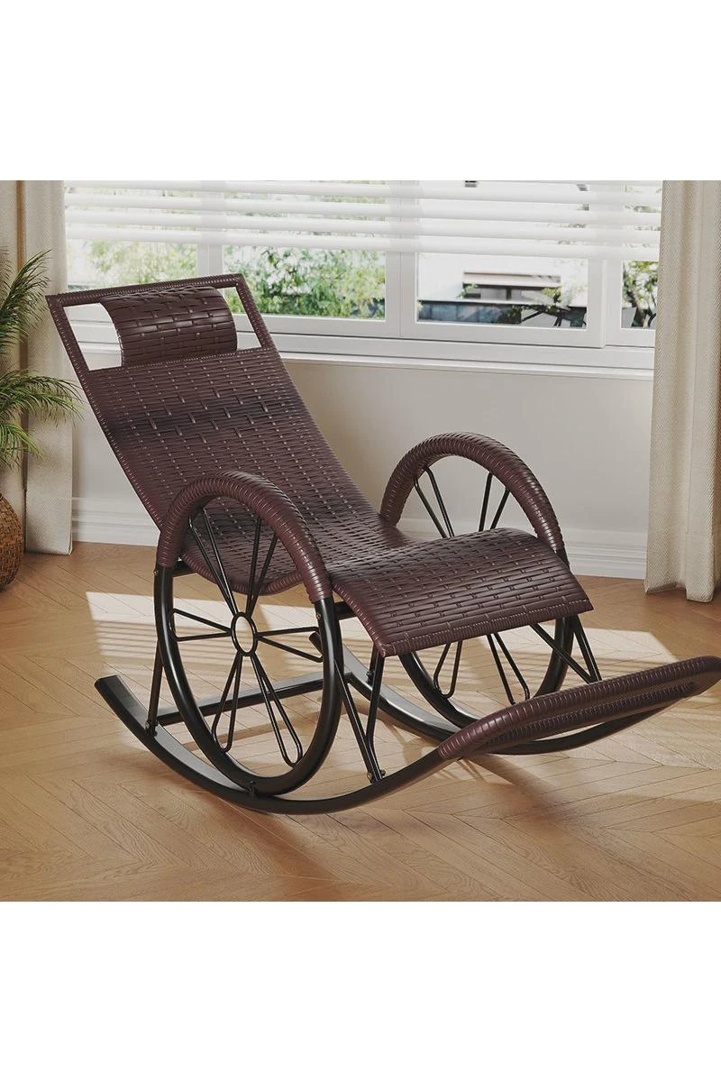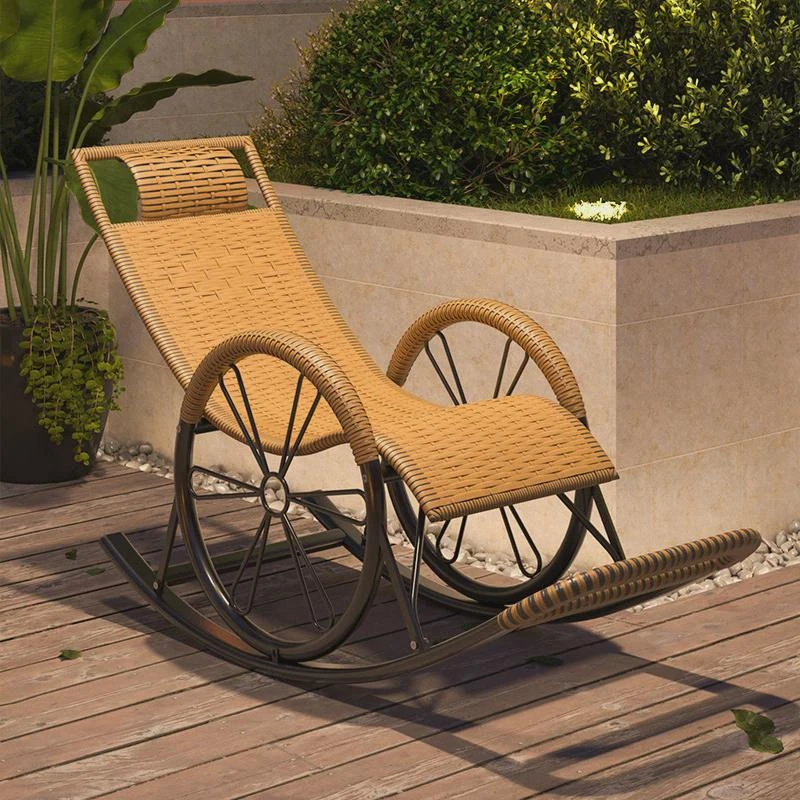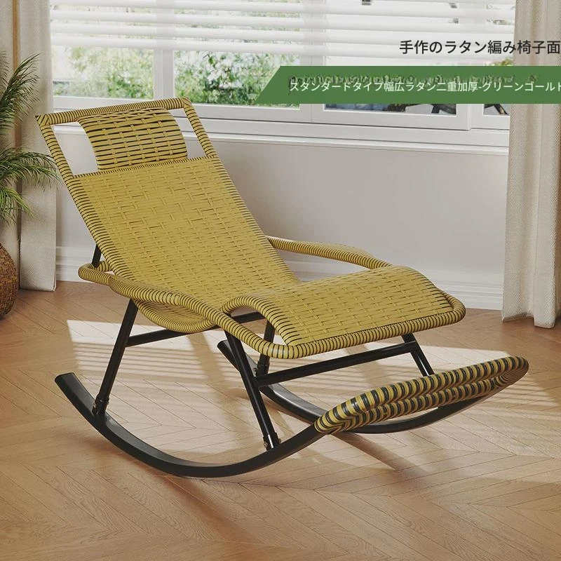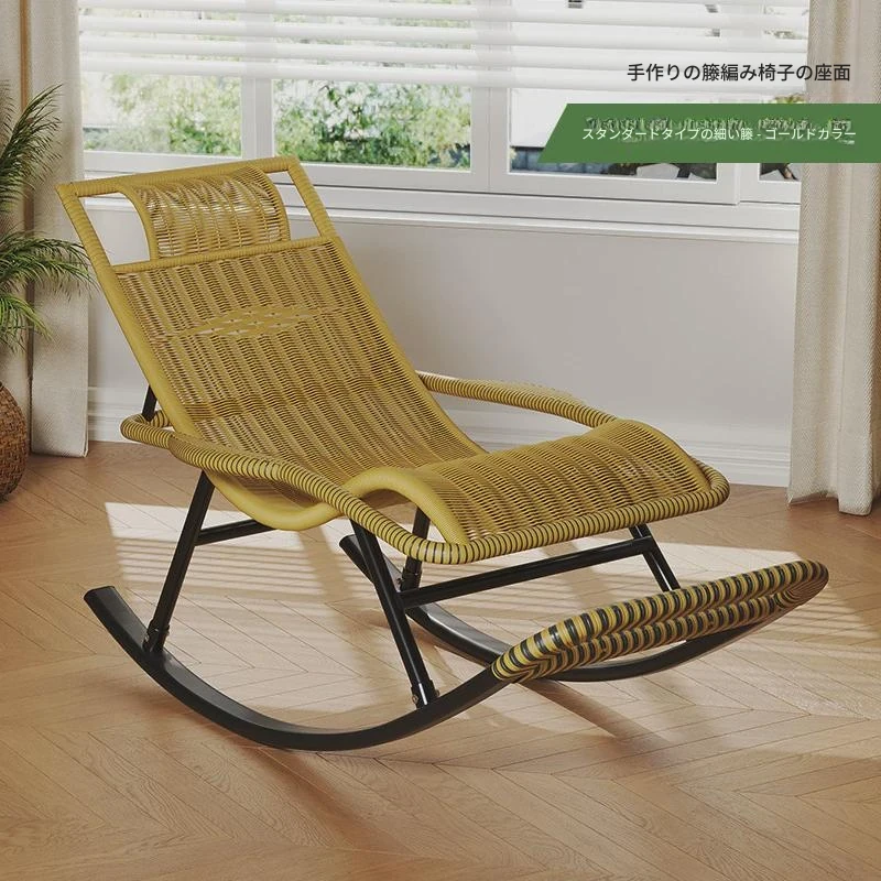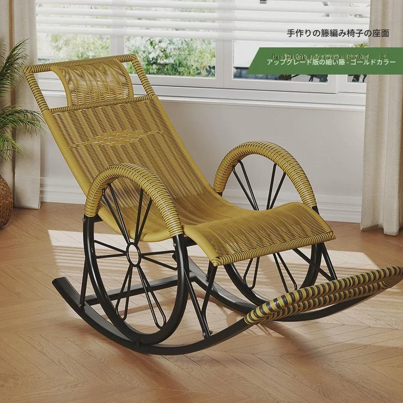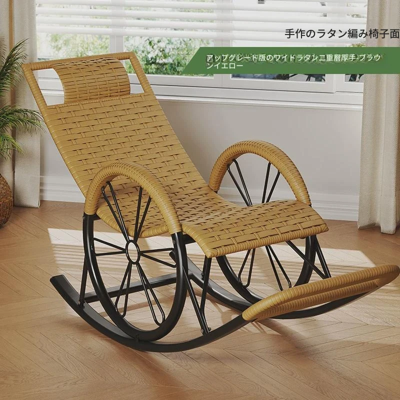 高齢者専用!快適なリクライニングチェア - 藤製の屋外用ロッキングチェア。防水・UVカットで、庭やベランダにぴったり。リラックスできる至福のひとときを提供します。