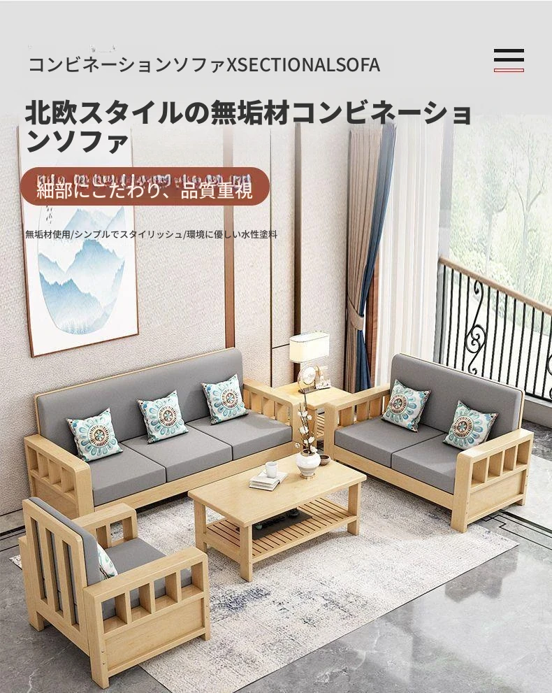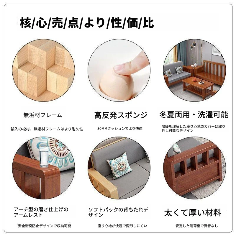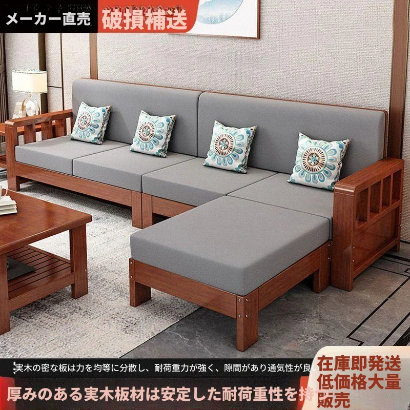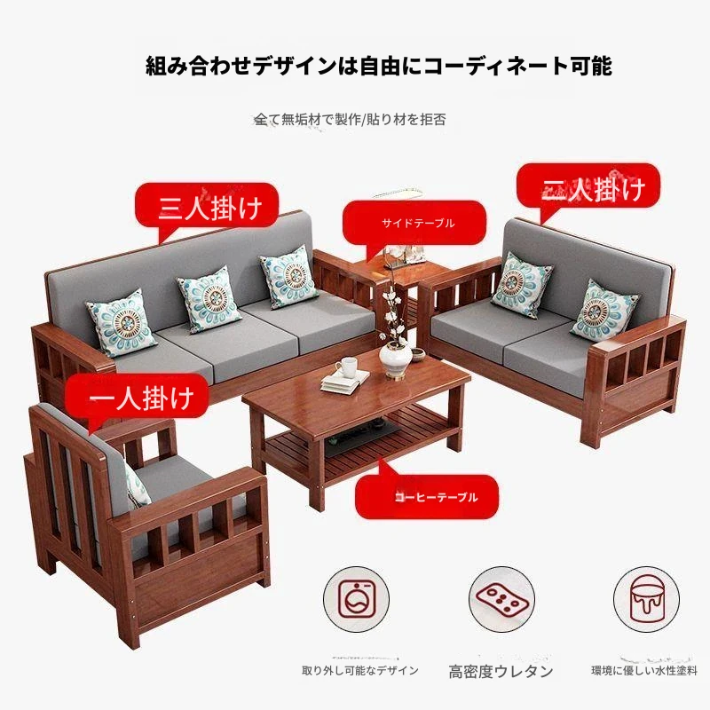 C!無垢材のソファセット 新中式デザイン 家庭用リビング 小型スペースに最適 シンプルで経済的な3人掛けソファ